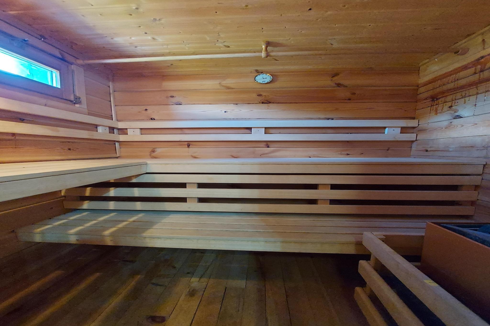 Küche(Wasserkocher, Toaster, Kochherd, Kaffeemaschine, Kombi-Mikrowelle, Kühl-/Gefrierkombination), Wohn/Esszimmer(TV), Schlafzimmer(Doppelbett), Schlafzimmer(Doppelbett), Badezimmer(Dusche, Waschbecken, Toilette), Empore(Doppelbett), Sauna, Trockner, Waschmaschine, Garten(umzäunt), Gartenmöbel, Grill