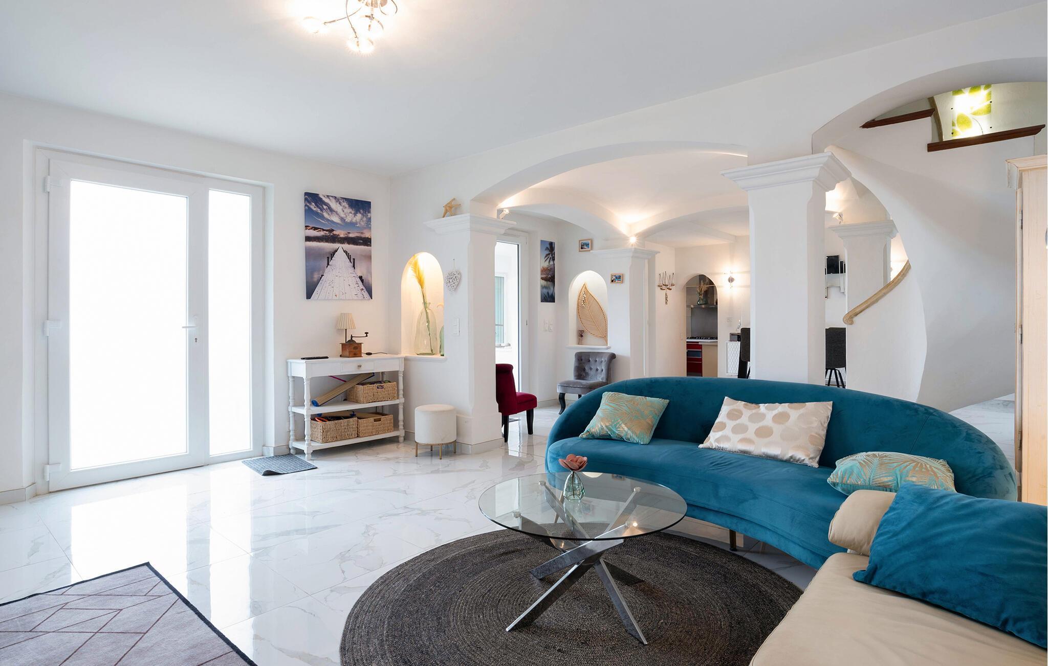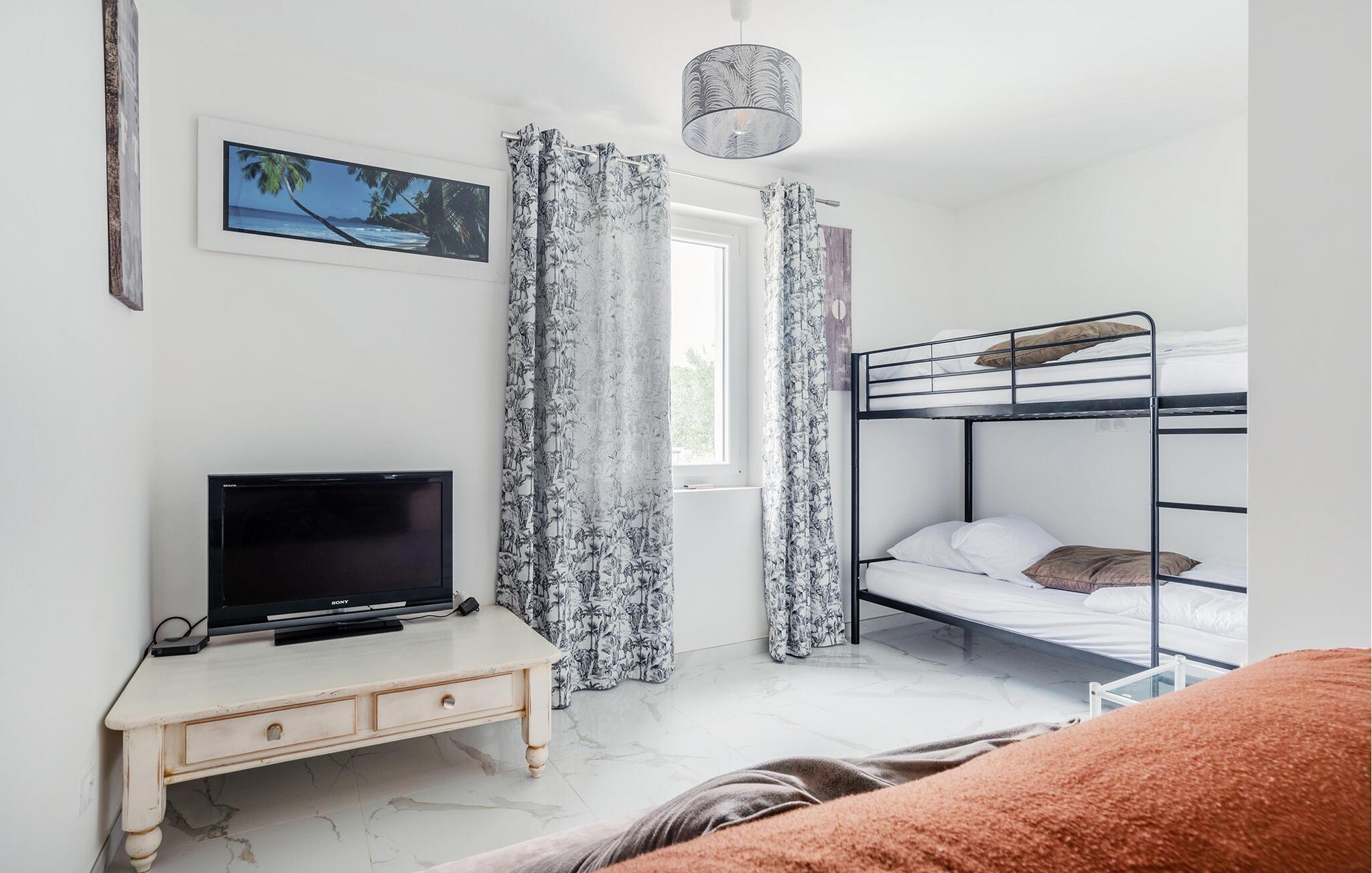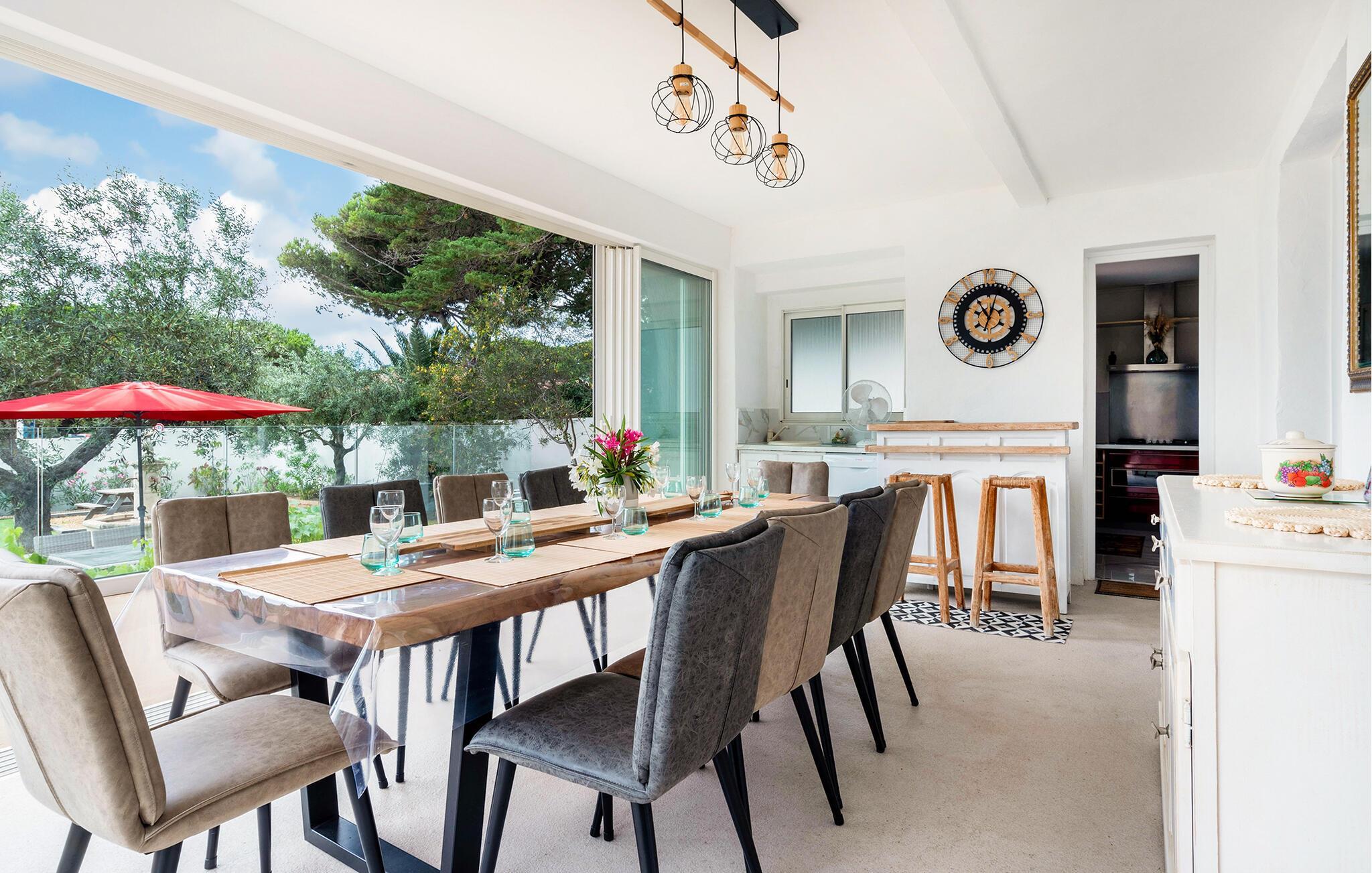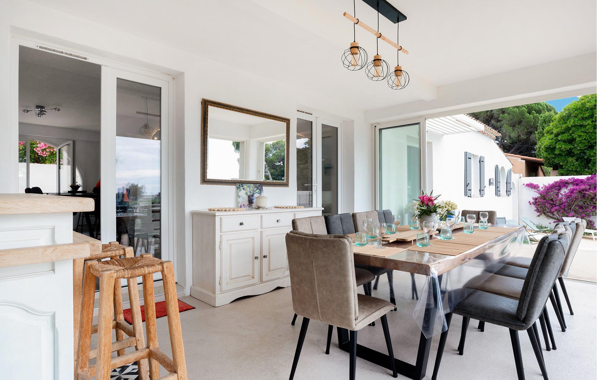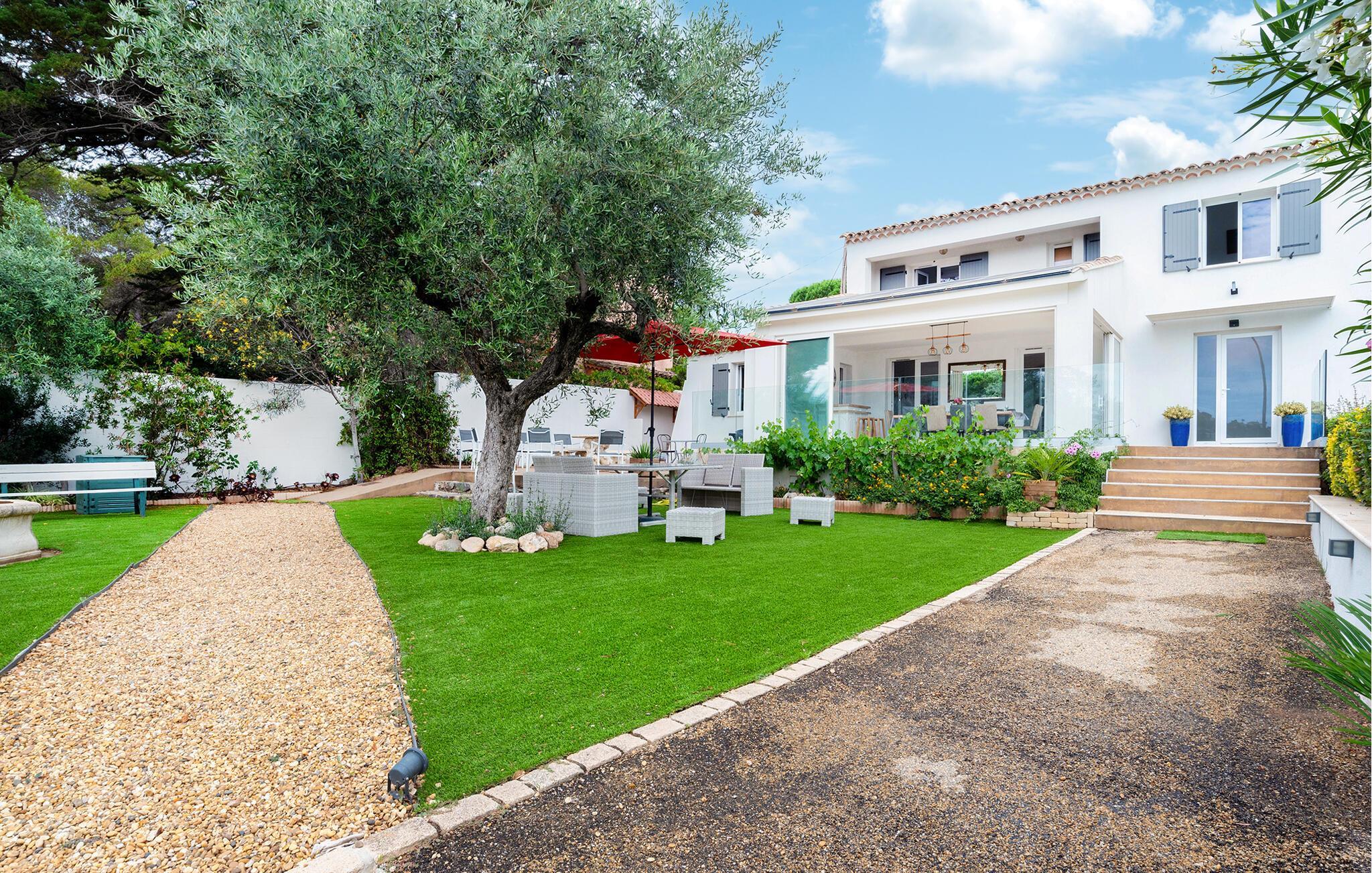Erleben Sie den Inbegriff von Luxus und Entspannung in diesem exquisiten Ferienhaus in Saint-Maxime. Das stilvolle Interieur, geprägt von modernen Akzenten und eleganter Einrichtung, lädt zum Wohlfühlen ein. Die großzügige, überdachte Terrasse bietet Ihnen einen perfekten Ort für entspannte Mahlzeiten im Freien. Der schön angelegte Garten mit einem einladenden Poolbereich und Sonnendeck sorgt für pure Erholung und sorgt dafür, dass Sie das mediterrane Flair in vollen Zügen genießen können. Hier finden Sie Ruhe und Komfort in perfektem Einklang.