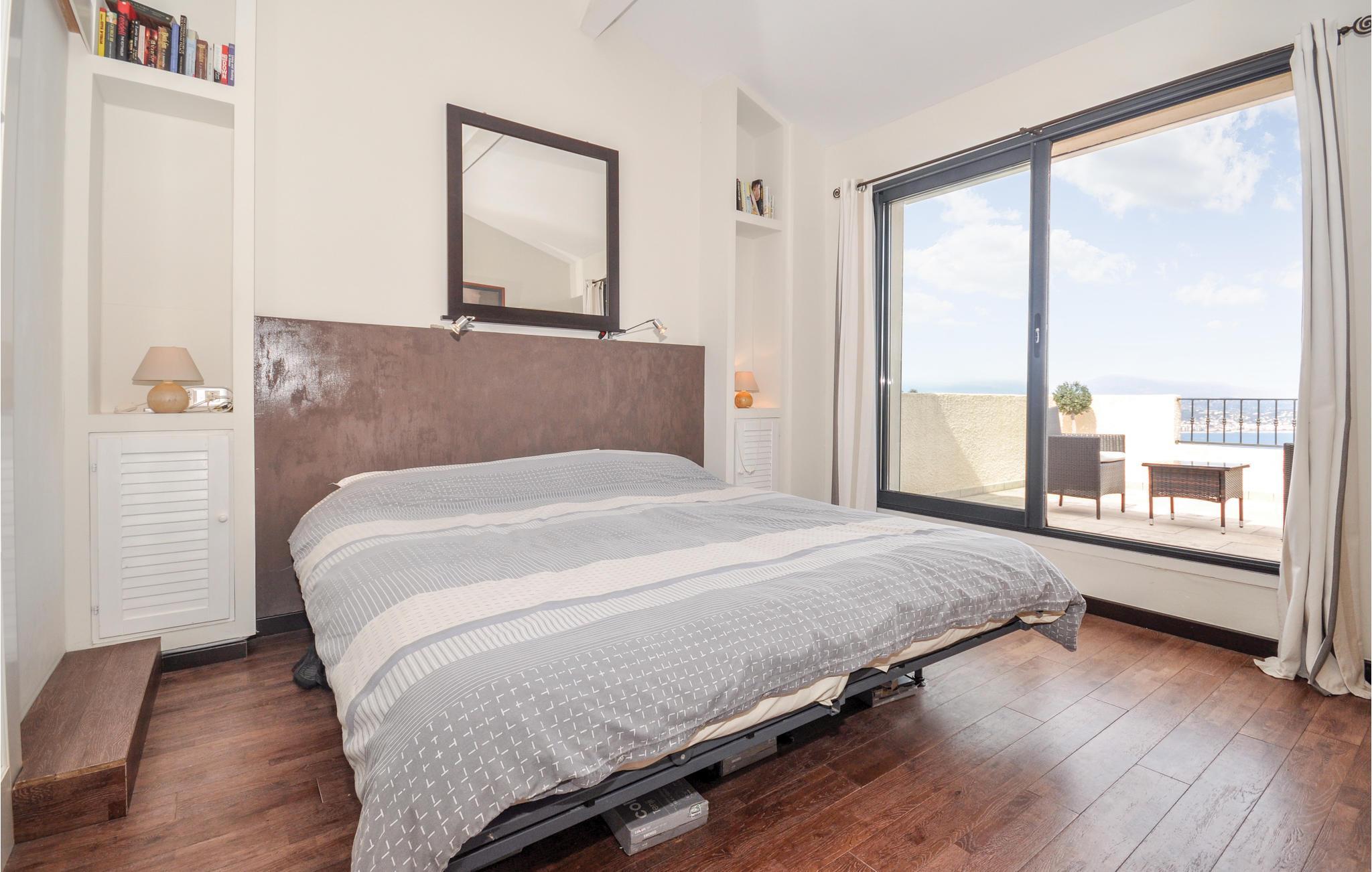 Dieses charmante Objekt profitiert außer einer guten Ausstattung und einer schönen Einrichtung auch von einem unverbaubaren Meerpanorama über die Bucht von Théoules-sur-Mer. Es gehört zu einer insgesamt 1.300 m² großen Wohnsiedlung mit Pool (500 m) und Tennisplatz. Ihnen stehen 20 m² Garten sowie, zum Meer hin, eine 50 m² große Terrasse zur alleinigen Verfügung. Théoule-sur-Mer ist ein charmanter Badeort mit einem gemütlichen Jachthafen, Geschäften und Restaurants sowie einem Bahnhof und kleinen, feinen Sandstränden. Unweit entfernt in Cannes können Sie auf der palmenbestandenen Promenade, der Boulevard de la Croisette, flanieren. Etwas weiter entfernt erwarten Sie Nizza und seine Promenade des Anglais, das Fürstentum Monaco oder aber Grasse, die Wiege des Parfums. Machen Sie bei einem Ausflug mit dem Auto am Litoral entlang Halt in den herrlichen Badeorten Saint-Raphaël oder Fréjus oder nehmen Sie die Bootsfähre nach Saint-Tropez, dem Paradies der High Society. Schlafzimmer 3 ist 4 m² groß und eher für ein Kind oder eine jugendliche Person geeignet.