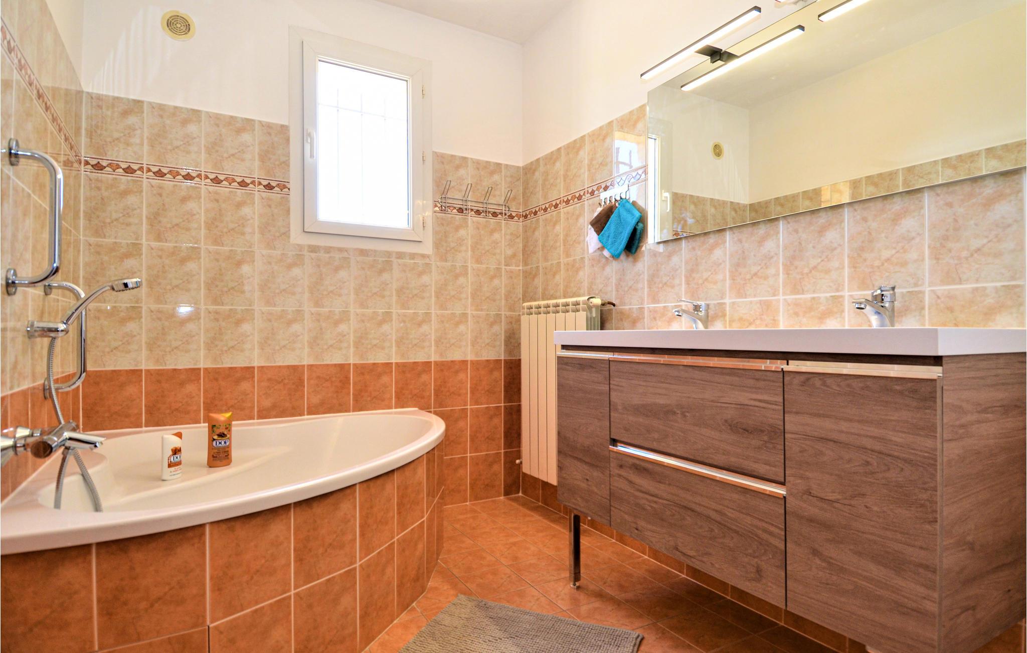 Das Haus bietet 4 schöne Schlafzimmer, 1 Badezimmer und 1 Duschbad mit WC, plus 1 separates WC sowie eine große, zum Wohnzimmer offene Küche mit schattigem Zugang zur Terrasse. Bis zu 10 Personen finden hier bequem Platz. Das Haus ist voll klimatisiert, so dass Sie hier auch in heißen Sommern angenehme Raumtemperaturen genießen.