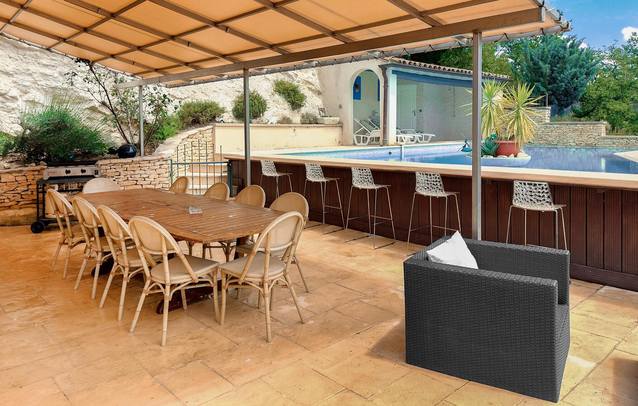 Eingebettet in die ruhige, malerische Landschaft der Provence, heißt Sie dieses komfortable Urlaubsdomizil willkommen. Hier steht alles für einen entspannten Urlaub in großer Runde bereit. Schwingen Sie gemeinsam den Kochlöffel und lassen Sie bei geselligen Mahlzeiten den Duft der umliegenden Vegetation durch die hellen, freundlichen Räume strömen. Veranstalten Sie fröhliche Spieleabende oder vertiefen Sie sich in Ihrer Lieblingsecke in ein gutes Buch.