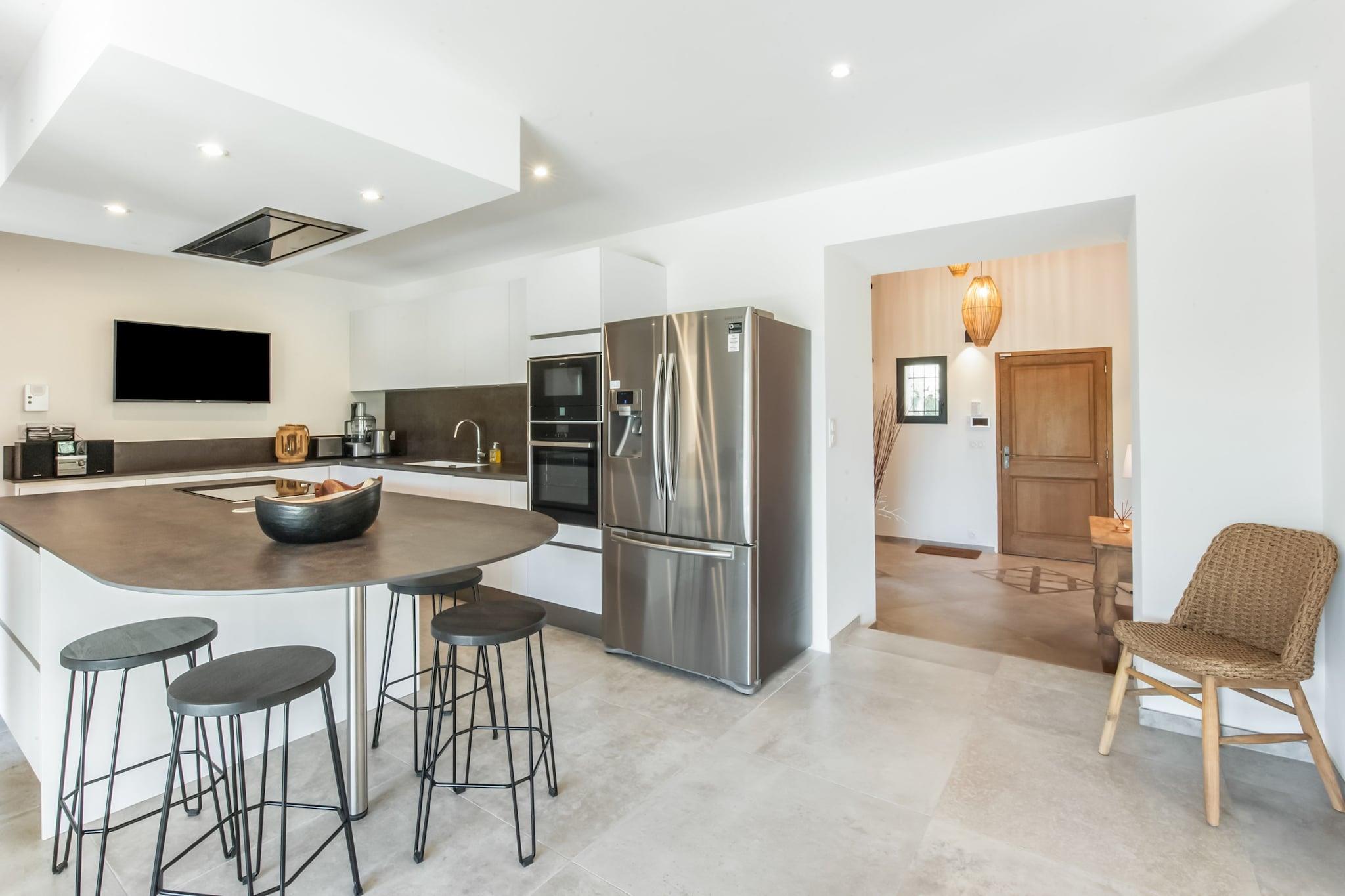 Dieses wunderschön renovierte Ferienhaus liegt nur wenige Minuten vom charmanten Dorf Vaison-la-Romaine entfernt. Es bietet Platz für bis zu acht Gäste und verfügt über vier komfortable Schlafzimmer, darunter eine Master-Suite im Erdgeschoss mit eigenem Bad. Das geräumige Wohnzimmer, der Essbereich und die moderne Küche öffnen sich direkt zum Garten und zur Terrasse. Im Obergeschoss befinden sich drei weitere Schlafzimmer und zwei Badezimmer - viel Platz für Familien oder Gruppen. Im Außenbereich erwarten Sie ein beheizter Infinity-Pool (geöffnet von Mitte April bis Mitte Oktober), ein Poolhaus und eine große Terrasse - ideal zum Entspannen unter der Sonne der Provence. Das Haus verbindet traditionellen Charme mit modernem Komfort und bietet einen ruhigen und stilvollen Rückzugsort. Lokale Restaurants und Supermärkte befinden sich in unmittelbarer Nähe. Ob Sie am Pool entspannen, die nahegelegenen römischen Ruinen erkunden oder ein Glas Wein unter dem Sternenhimmel genießen - diese Villa ist ideal für einen erholsamen Urlaub in Südfrankreich.