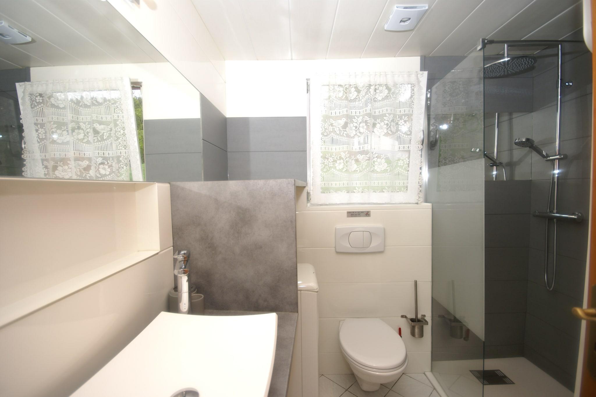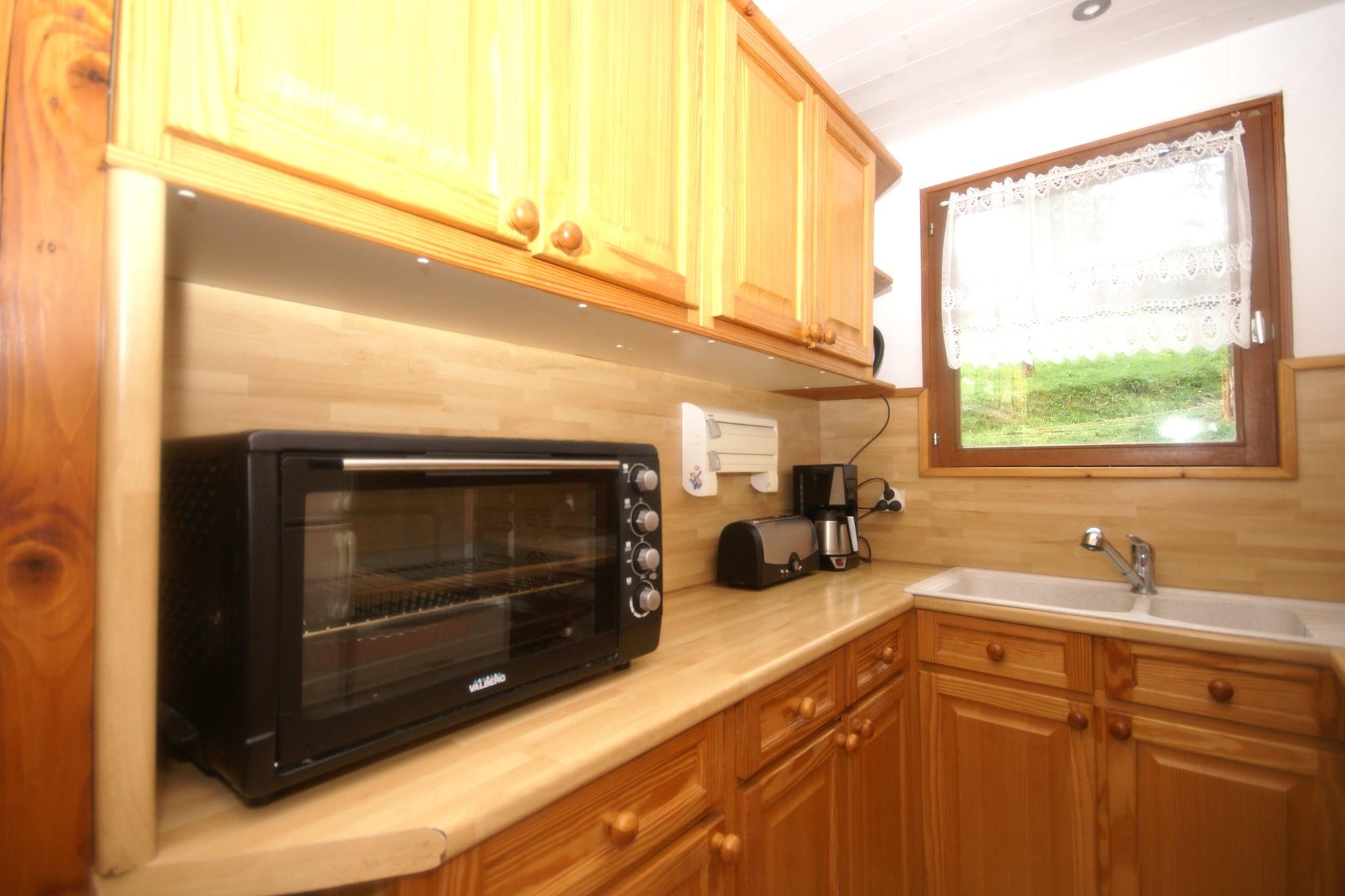 Parterre: (Wohnzimmer(TV(Satellit), Dekokamin, DVD-Spieler), offene Küche(Kochherd(Ceranfeld), Kaffeemaschine, Backofen, Mikrowelle, Spülmaschine, Kühl-/Gefrierkombination), Schlafzimmer(Doppelbett(160 x 200 cm)), Schlafzimmer(Einzelbett(Decke, 90 x 190 cm), Etagenbett), Badezimmer(Dusche, Waschbecken, Toilette, Waschmaschine)) Skikeller, Heizung(elektrisch), Terrasse(überdacht), Garten(Gemeinschaftliche Nutzung mit anderen Gästen), Gartenmöbel, Grill, Boulebahn, Kinderbett(auf Anfrage), Hochstuhl(auf Anfrage)