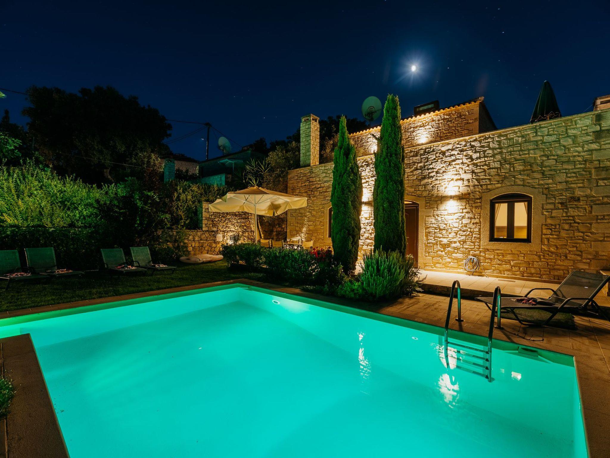 Die über 3 Schlafzimmer und 2 Bäder verfügende Villa ist anspruchsvoll ausgestattet und geschmackvoll eingerichtet. Die einmalige Wohnatmosphäre durch die massive Steinbauweise verzaubert. Die Villa bietet einen hohen Wohnkomfort und ist dank der Fußbodenheizung auch im Winter ein gemütliches Ferienziel. Der offene Kamin lädt zu gemütlichen Abenden in den Wintermonaten ein, wobei es diesbezüglich um die Gemütlichkeit geht, da auch in den Wintermonaten die Lufttemperaturen noch sehr angenehm sind. Zu dem Domizil gehört ein 40qm großer Pool mit Kinderbecken. Die Terrassen sind mit schönen Gartenmöbeln ausgestattet. Eine kleine Bibliothek mit Büchern und eine Stereoanlage gehören zur Ausstattung wie ein SAT-TV mit ca. 50 deutschen Kanälen. INTERNET CONNECTION WIFI ist frei, aber Password geschützt, um einen 'Missbrauch' durch Kinder zu vermeiden,. Innerhalb der letzten Jahre hat die Villa Olympia sehr viele Stammgäste gewonnen, die immer wieder gerne zurückkehren. Das Haus ist ideal für Familien, eignet sich aber auch für kleine Gruppen, die auf Kreta einen Aktivurlaub verbringen möchten, wie. z.B. Radsportler, Wanderer oder Triathleten. Auch für Kulturinteressierte ist der Standort ideal, da man alle Bereiche der Insel innerhalb eines Tagesausfluges erreichen kann. Wunderschöne Strände sind in wenigen Minuten erreichbar.