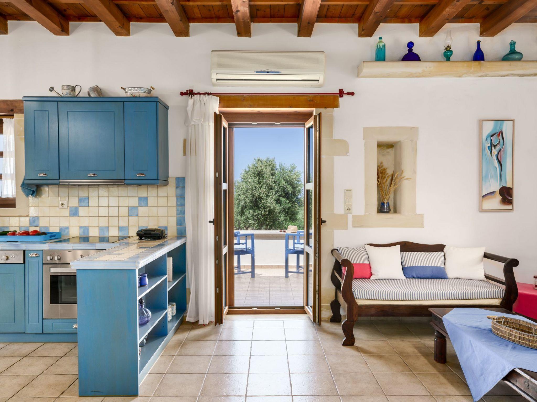 Der Außenbereich umfasst 8 Hektar privates, eingezäuntes Land mit einem 85 Quadratmeter großen Swimmingpool. Die Gäste können auch frisches Obst und Gemüse aus dem Garten genießen und mit lokalem kretischen Olivenöl kochen, das bei der Ankunft geliefert wird. Ein Willkommenspaket mit Raki, Wein, frischem Obst und kretischen Kräutern wird Sie bei Ihrem Aufenthalt ebenfalls willkommen heißen.