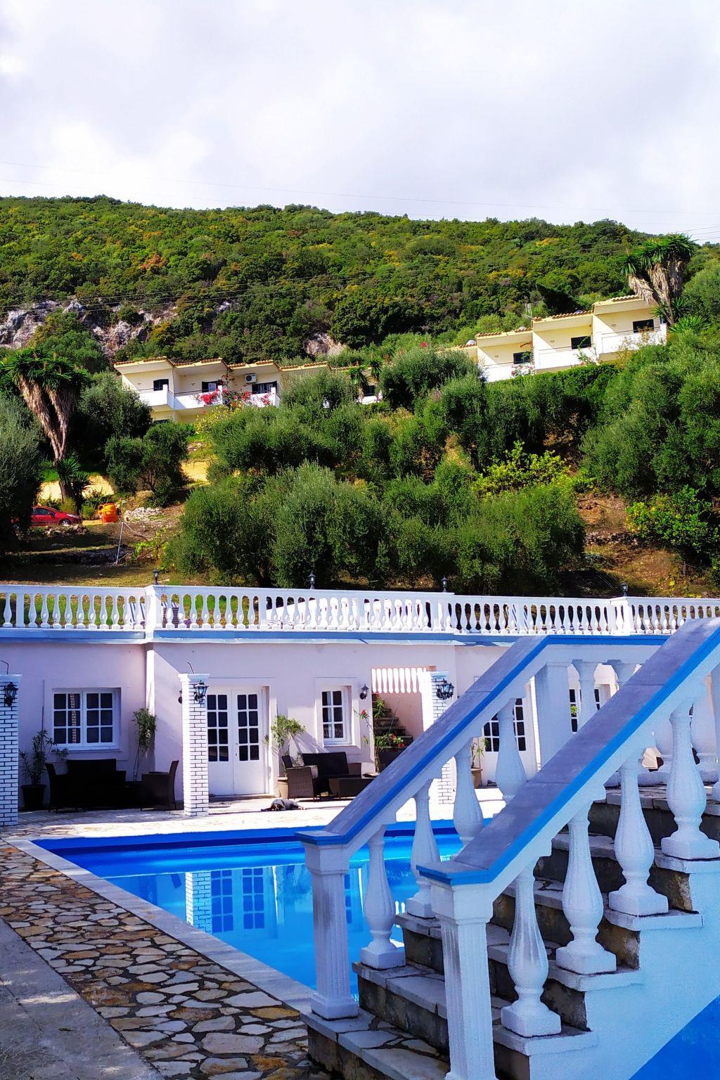 Die Anlage mit 18 Einheiten ist am Berg gelegen, inmitten von Olivenbäumen. Sie haben eine fantastische Aussicht aus allen Apartments auf das ionische Meer. Wer Ruhe und Entspannung sucht, ist hier richtig.