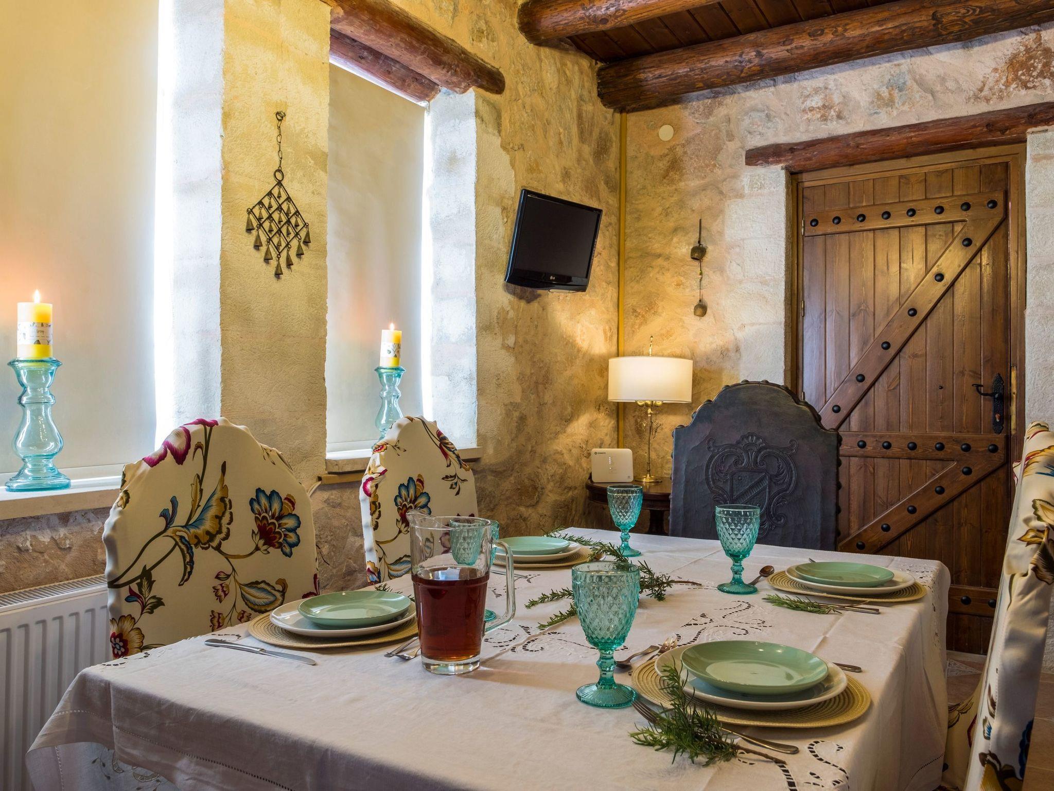 Die Ferienvilla ist ein zweistöckiges, traditionelles kretisches Dorfhaus aus Stein mit 140 Quadratmetern. Große Fenster auf allen Seiten der Ferienvilla sorgen für viel Tageslicht. Das Erdgeschoss besteht aus einem Wohnbereich, einer voll ausgestatteten Küche, einem Badezimmer (Badewanne und Duschvorrichtung, Waschbecken und Toilette) und einem großen Schlafzimmer mit einem 180 x 200 cm großen Doppelbett und einem großen Kleiderschrank. Der Wohnbereich hat einen großen Kamin, einen Esstisch und ein bequemes Sofa, das zu einem Einzelbett ausgeklappt werden kann. Die Küche ist komplett mit Cerankochfeld, Backofen, Mikrowelle, Kühlschrank mit Gefrierfach, Wasserkocher, Toaster und Kaffeemaschine ausgestattet. Eine breite Holztreppe führt in den ersten Stock, wo sich zwei weitere große Schlafzimmer (beide mit einem 180 x 200 cm großen Doppelbett und eines mit einem zusätzlichen 90 x 200 cm großen Einzelbett) und das zweite Badezimmer befinden. Das große Badezimmer zwischen den beiden Schlafzimmern auf dieser Etage verfügt über eine Duschkabine, ein Waschbecken und eine Toilette. TV und WI-FI sind kostenlos verfügbar.