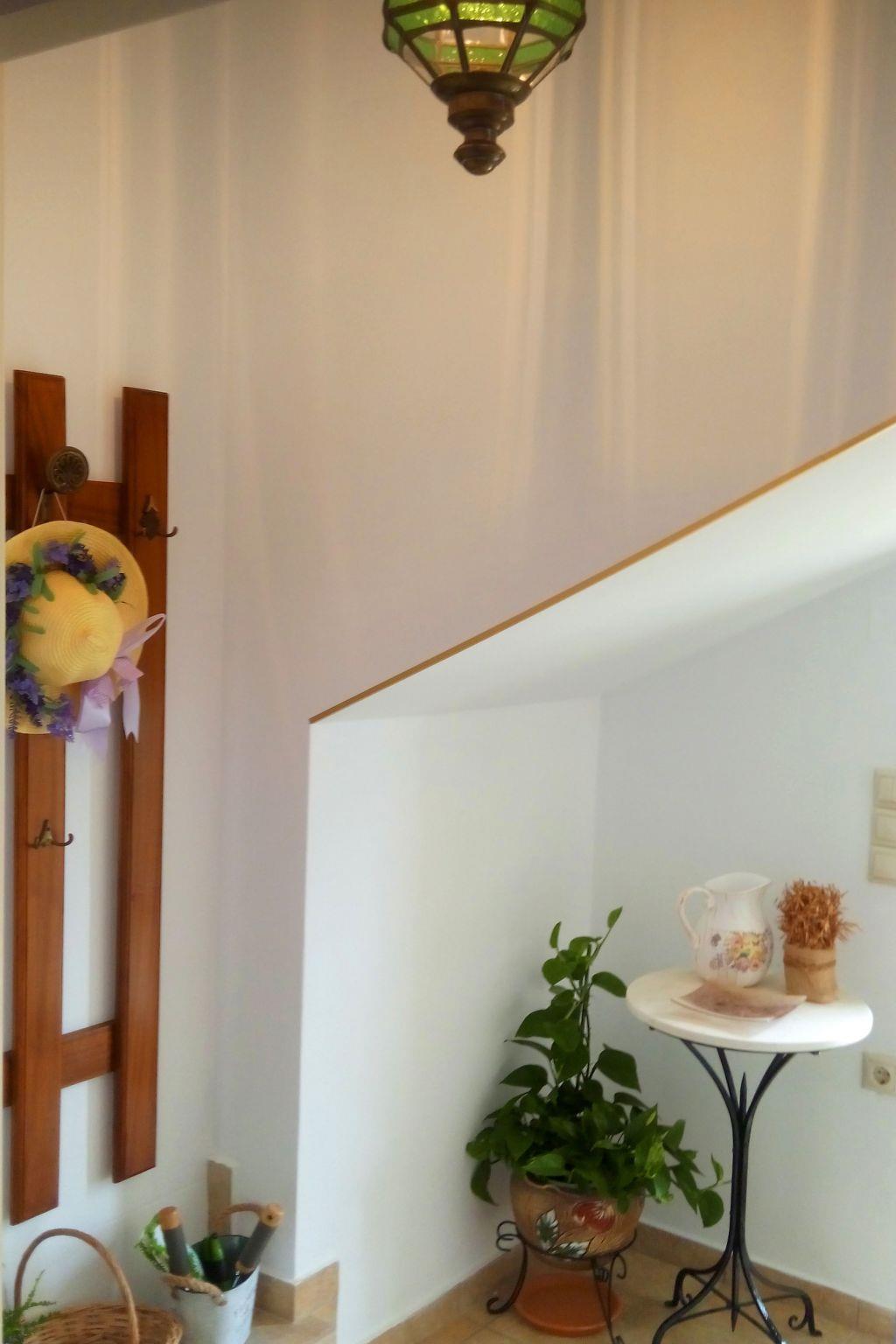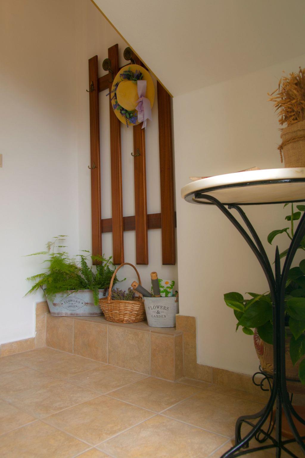Die Wohnung wird durch das Element des natürlichen Holzes dominiert. Die Grundmöbel wurden mit viel Liebe und Geschmack entworfen und gebaut, während einige Vintage-Stücke von besonderer Schönheit sind, wie der Schreibtisch und zwei Spiegel im Schlafzimmer und im Bad, das Radio aus den 40er Jahren und die alte Nähmaschine.Die Wohnung ist für Menschen gedacht, die die Natur lieben, da sie neben dem Felsengarten liegt, der ein kleiner botanischer Garten ist und von großen Kiefern beschattet wird. Bereits im Eingangsbereich der Wohnung erwartet die Besucher eine "ländliche" Ecke mit Gartengeräten für diejenigen, die einige Zeit im Garten verbringen und vom Eigentümer die Verwendung und die Eigenschaften der kretischen Kräuter lernen möchten.