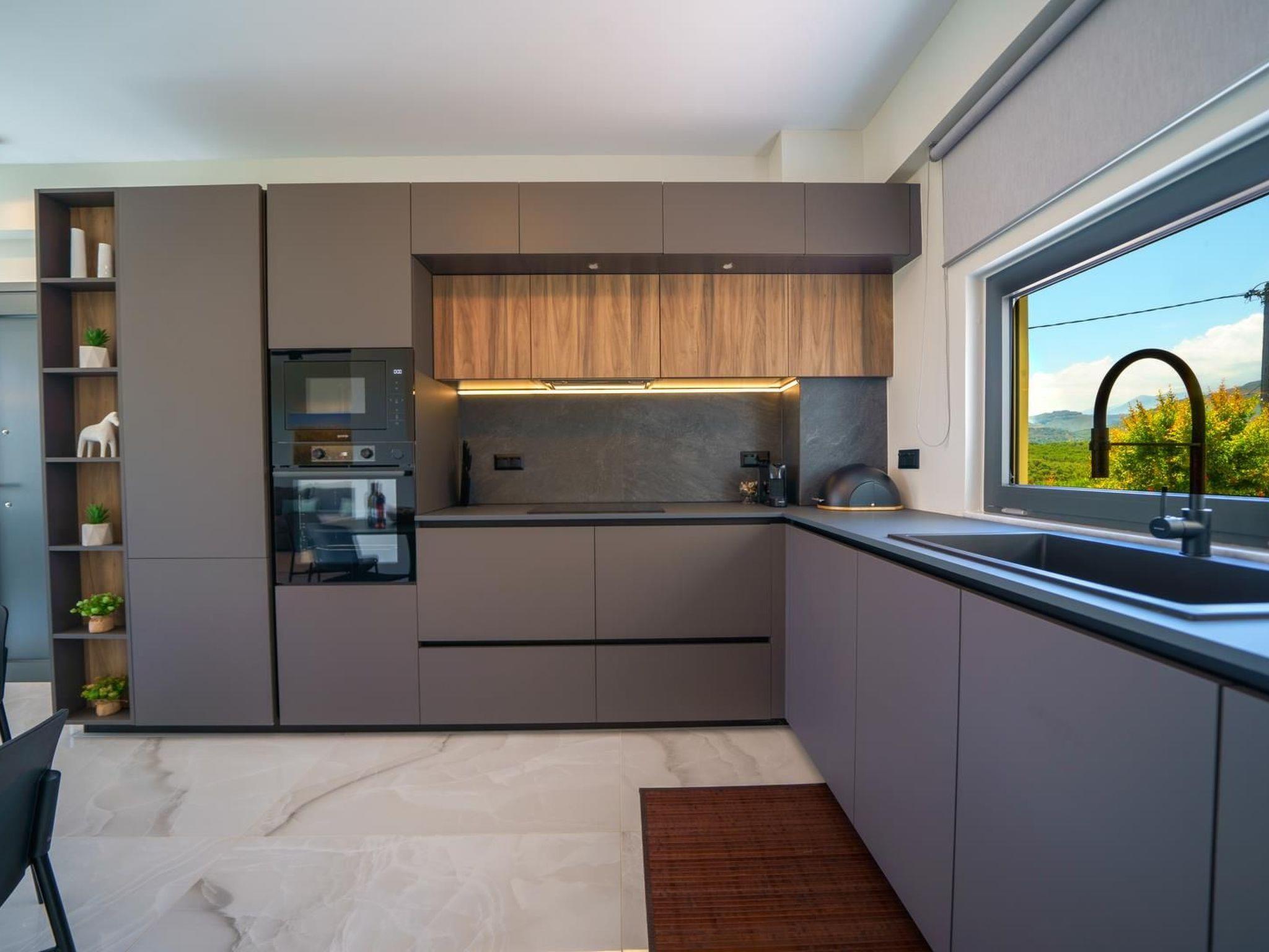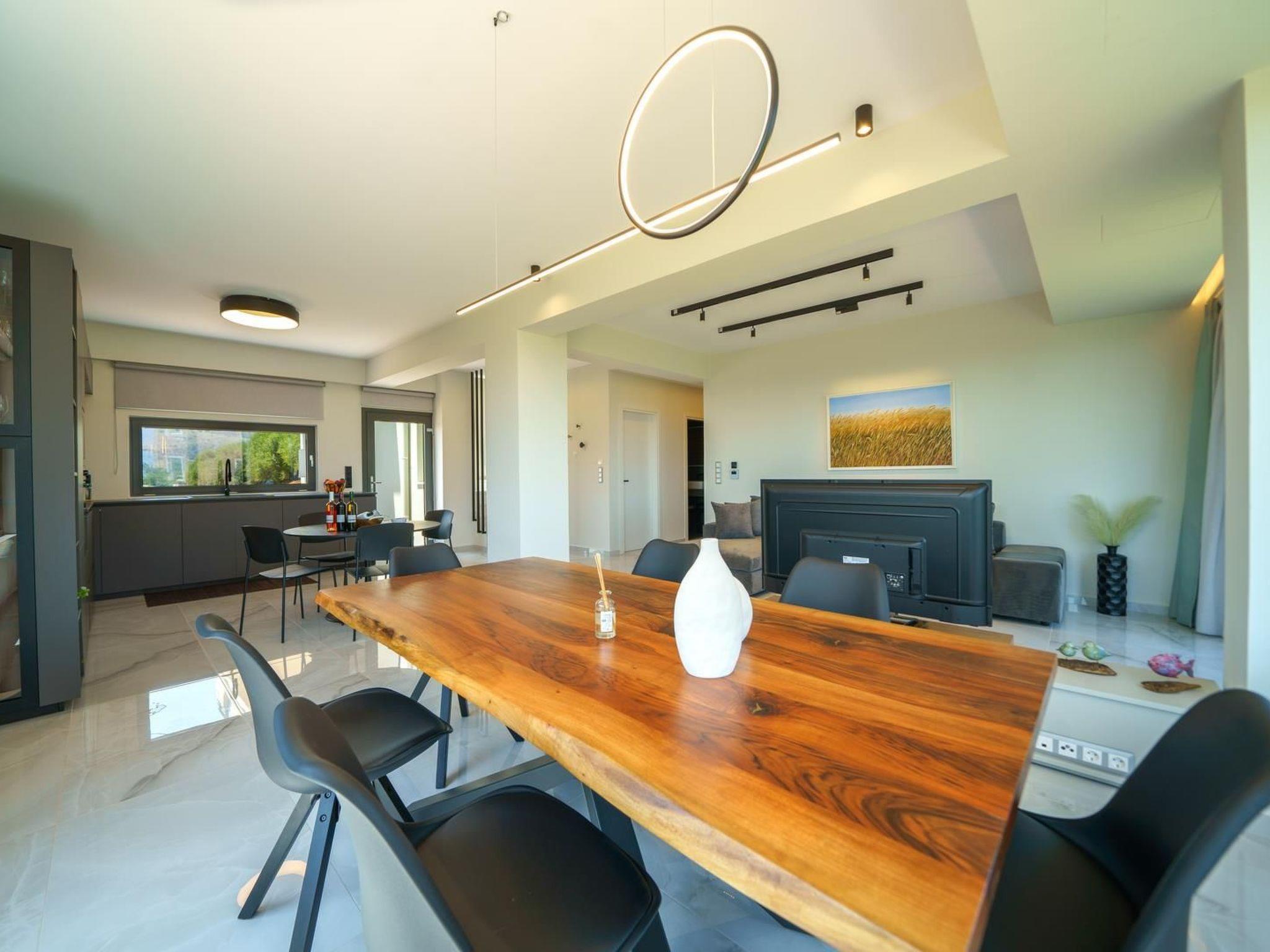 Entfliehen Sie in eine exklusive, komplett freistehende Luxus-Ferienvilla in den ruhigen Olivenhainen nur 5 km vom Stadtzentrum von Chania entfernt. Mit ihrem privaten beheizten Swimmingpool, einem separaten Kinderbecken und einem atemberaubenden Panoramablick auf das Meer, die Berge und die Stadt bietet Ihnen diese geräumige und helle Villa absolute Entspannung und Privatsphäre. Hier wird Ihnen ein Urlaubserlebnis versprochen, das Luxus mit der beruhigenden Umarmung der Natur verbindet.