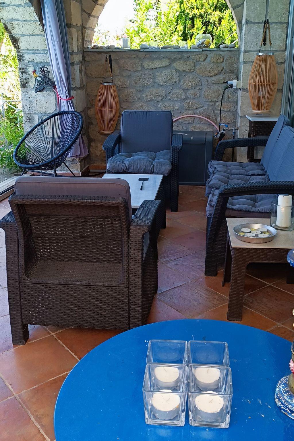 Der private Pool liegt genau vor der Terrasse. Die Maße sind 8x4 Meter. Die Tiefe liegt zwischen 60 cm und 160 cm.