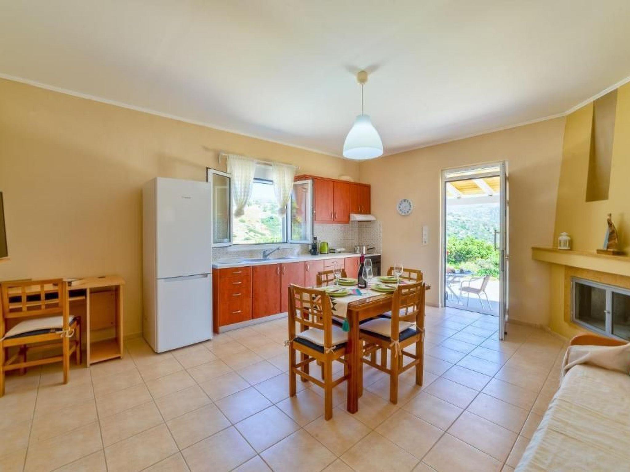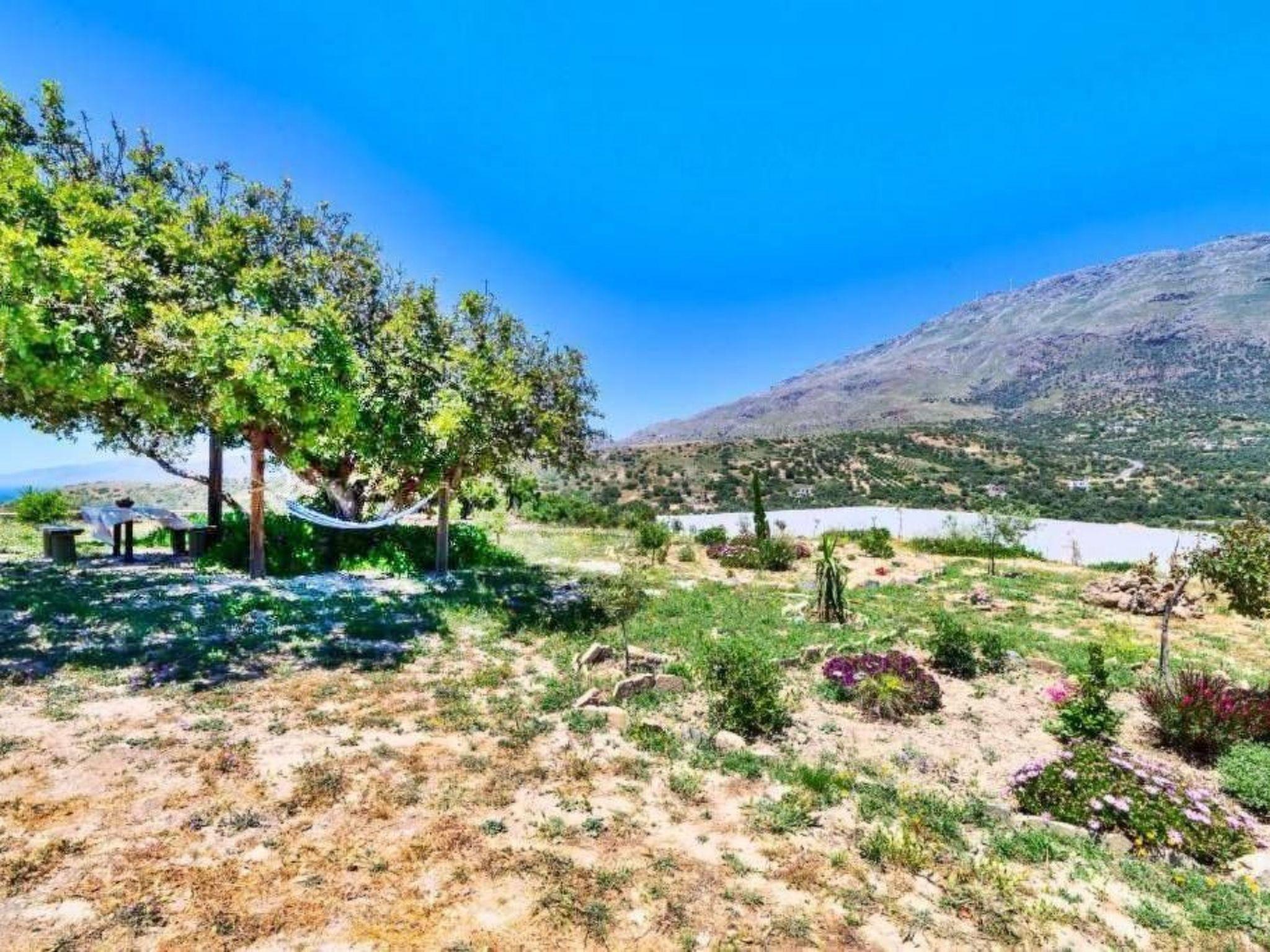 Wir bieten ein Haus von 78m2 in einer ruhigen Lage, das bis zu 5 Gäste beherbergen kann, mit einem Garten in einem gemeinsamen 5 Hektar großen Grundstück, auf einem Hügel, mit uneingeschränktem Berg- und Meerblick (mit Blick auf zwei Strände, Mikri und Megali Triopetra). Ihr Auto kann es bis zum Eingang erreichen.