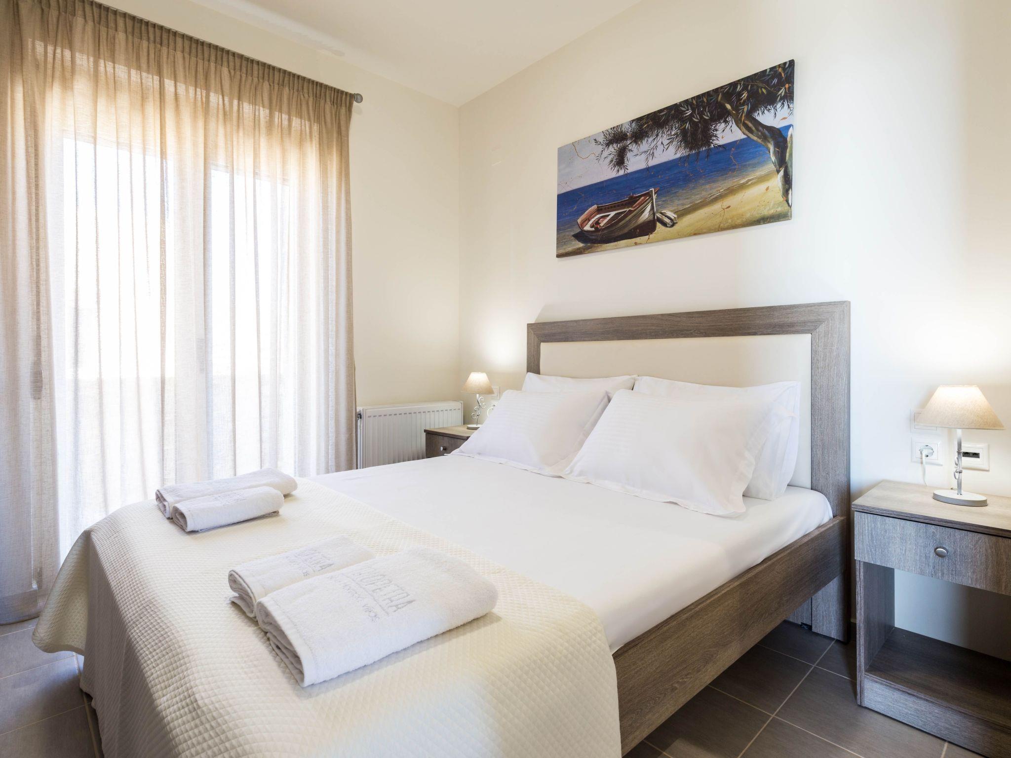 In der Nähe der Villen gibt es 7 traditionelle Tavernen, die einheimische, frische und schmackhafte Speisen (Fleisch und Fisch) anbieten. Im Dorf Akoumia, 10 km von den Villen entfernt, gibt es mehrere Cafés, einen Obst- und Gemüseladen, eine Metzgerei und einen Minimarkt, wo Sie Ihren Kühlschrank mit Ihren Lieblingsspeisen, Getränken und Artikeln des ersten Bedarfs auffüllen können. Außerdem gibt es ein Krankenhaus und eine Apotheke im Dorf Spili, 18 km von Villas entfernt. Nutzen Sie die ideale Lage und entdecken Sie die Schönheiten, die unsere Insel Ihnen zu bieten hat: herrliche Strände, atemberaubende Landschaften, unzählige Möglichkeiten, alle traditionellen kretischen Gerichte zu probieren! Der Strand von Triopetra liegt etwa 47 km südlich von Rethymno (45 Minuten mit dem Auto) und 12 km südöstlich des Dorfes Akoumia, am Fuße des Berges Siderotas. Er ist mit dem Auto über die asphaltierte Straße, die vom Dorf Akoumia ausgeht, gut erreichbar. Triopetra besteht aus zwei Stränden, die durch eine kleine Halbinsel getrennt sind. Am Rande der Halbinsel erheben sich drei majestätische Felsen.
