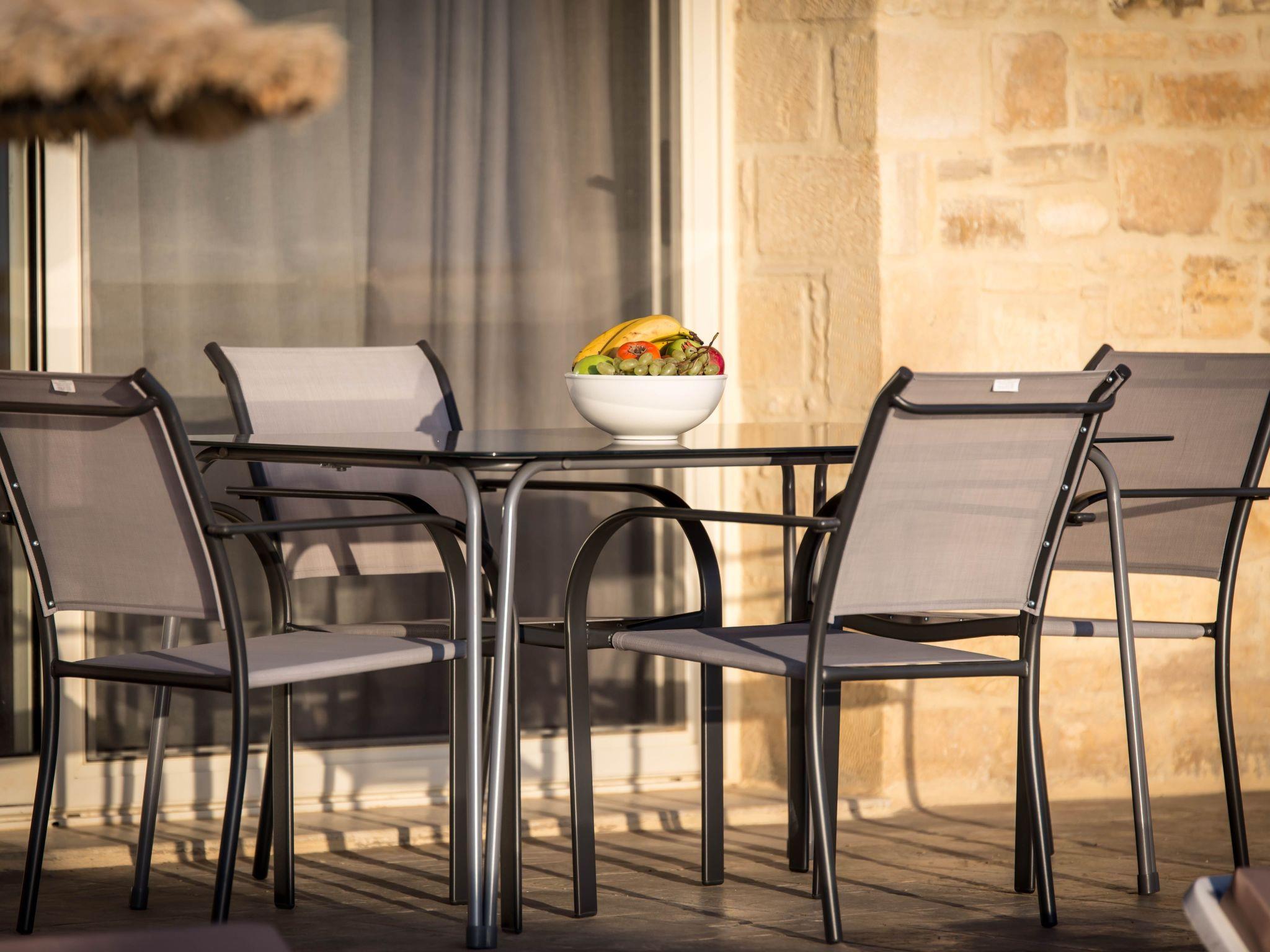 Die Villa liegt am östlichen Ende des Komplexes und ist für 4 Personen geeignet. Diese eigenständige Villa verfügt über ein Schlafzimmer (ein Doppelbett ist inbegriffen) und eine voll ausgestattete Küche, die Flexibilität während Ihres Aufenthalts bietet. Annehmlichkeiten wie Heizung, Kühlschrank, Waschmaschine, Handtücher und kostenloses Wi-Fi runden Ihren Aufenthalt an diesem schönen Ort ab. Das großzügige Wohnzimmer ist ideal, um sich zu entspannen. Die Philosophie und das Design der Villa bieten Ihnen ein hotelähnliches Gefühl, aber mit dem Komfort, als Familie oder mit Freunden zusammen zu wohnen. Die Villen bieten jedem Gast Selbstbestimmung und Unabhängigkeit, kombiniert mit dem Genuss der reinen natürlichen Umgebung. Jede modern eingerichtete Villa verfügt über einen großzügigen Außenbereich mit einem großen privaten Swimmingpool (für Erwachsene und Kinder geeignet), Sonnenliegen mit Beistelltischen, einer Pergola, einem Esszimmer im Freien und einem tragbaren Barbecue-Grill. Annehmlichkeiten wie schnelles VDSL-WI-FI-Internet, Klimaanlage, Heizung und Full-HD-Satelliten-Smart-TV sorgen dafür, dass Sie sich in Ihrer Unterkunft wie zu Hause fühlen. Das Schlafzimmer verfügt über zwei Nachttische, einen Schminktisch und Kleiderschränke. Die Küchen sind voll ausgestattet mit allen modernen Geräten wie Kaffeemaschine (Nespresso-Maschine ist ebenfalls enthalten), Wasserkocher, Toaster, Saftpresse, Mini-Zerkleinerer, Mixer, Geschirrspüler, Kühlschrank mit Gefrierfach, Waschmaschine/Trockner und Backofen mit Cerankochfeld. Der große Esstisch mit bequemen Stühlen eignet sich perfekt für ein Familien- oder geselliges Abendessen. Der stilvolle Wohnbereich bietet eine Lounge, eine Essecke, einen Kamin, einen Fernseher, eine Mikro-Stereoanlage, WI-FI-Internetzugang und ein Telefon. Es gibt auch ein Ecksofa und einen Couchtisch. Steamer, Staubsauger und Kinderwagen sind ebenfalls vorhanden. Im Badezimmer gibt es eine Wohlfühldusche mit Glaskabine, einen Haartrockner, ein komplettes Set an Toilettenartikeln und Stauraum, um Ihre Sachen zu verstauen.