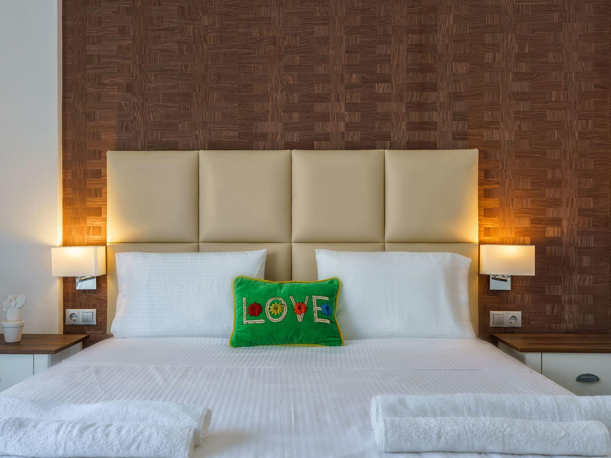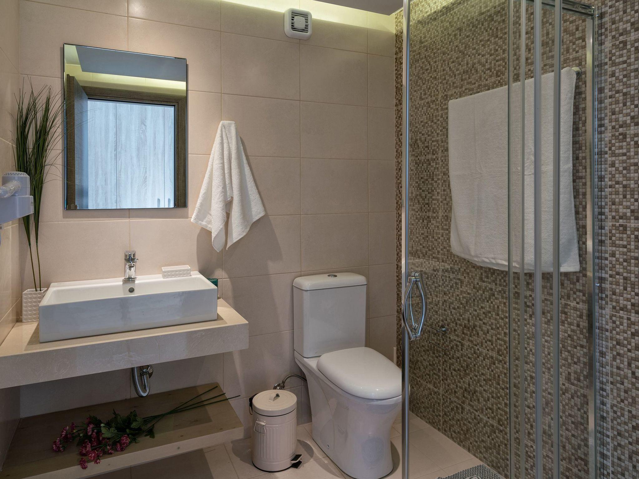 Iakinthos Residenz besteht aus zwei Etagen mit einer Gesamtfläche von 170 qm, und es kann bis zu sechs (6) Personen +1 Schlafsofa unterbringen. Im Erdgeschoss gibt es eine große, voll ausgestattete Küche mit einem Esstisch, ein geräumiges Wohnzimmer mit bequemen Sofas und einem großen Satelliten-TV. Auf der gleichen Etage befindet sich auch das Hauptschlafzimmer mit eigenem Bad. Eine Treppe führt in den ersten Stock, wo sich zwei weitere Hauptschlafzimmer mit eigenem Bad und einem großen Balkon befinden, von dem aus Sie den unverbauten Blick auf das Meer genießen können. Alle Schlafzimmer sind mit Kingsize-Betten und Kleiderschränken ausgestattet. Alle Bäder der Residenz sind modern gestaltet und mit hochwertigen Badutensilien ausgestattet. Eine Waschmaschine ist ebenfalls vorhanden. Im Außenbereich befindet sich ein 28 m² großer privater Swimmingpool mit Liegestühlen, wo Sie unter der kretischen Sonne entspannen und eine Mahlzeit auf dem Steingrill zubereiten können. Der Pool ist von einem schönen Garten mit einheimischen Pflanzen umgeben. Ein Parkplatz für Ihr Auto ist ebenfalls vorhanden. Zweimal pro Woche (oder auf Anfrage) wird ein Hausmeisterservice angeboten. Ein Babybett und ein Hochstuhl sind auf Anfrage kostenlos erhältlich. Check-out bis spätestens 11:00 Uhr und Check-in bis 15:00 Uhr.