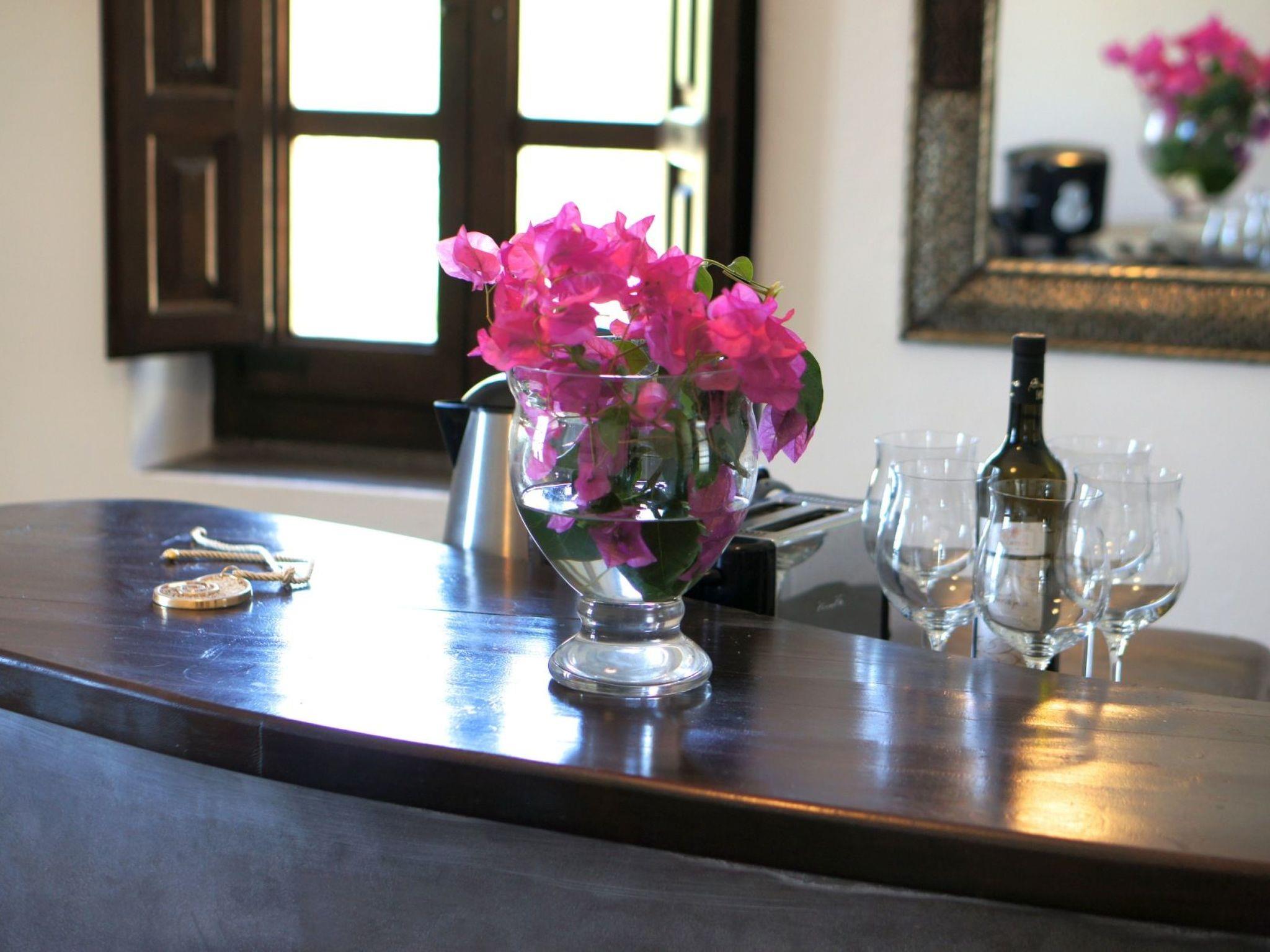 Das prächtige Herrenhaus erstreckt sich über zwei Etagen und bietet Platz für sechs Personen. Es besteht aus drei separaten Wohnungen, zwei im Erdgeschoss und eine im ersten Stock, wo sich auch ein Wohnzimmer, ein Innen- und ein Außen-Essbereich befinden. Die beiden Ebenen der Villa sind über eine Außentreppe miteinander verbunden. Die drei klimatisierten Schlafzimmer sind jeweils mit einem Doppelbett ausgestattet und verfügen über ein eigenes Bad. Das Hauptschlafzimmer hat ein Kingsize-Bett und ein offenes Bad mit Badewanne und Dusche. Das zweite Badezimmer verfügt ebenfalls über eine Badewanne und eine Dusche, während das dritte ebenfalls mit einer Dusche ausgestattet ist. Die Kochnischen sind mit allen notwendigen Küchengeräten ausgestattet. Kostenloser drahtloser Breitband-Internetzugang ist verfügbar.