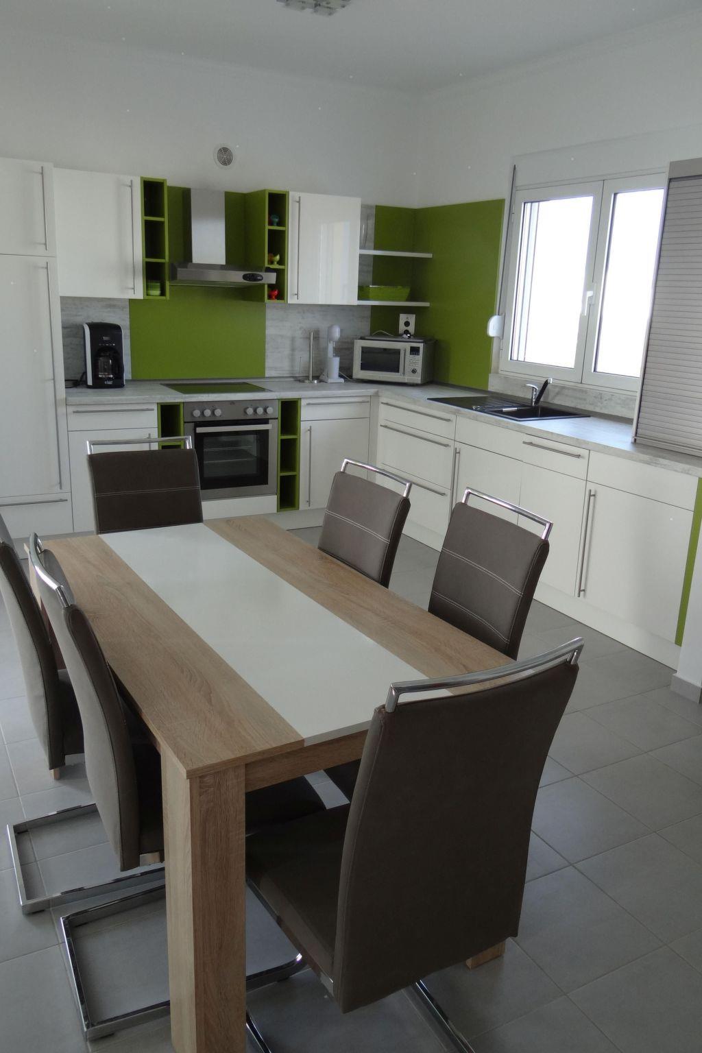 Im Inneren des Hauses erwartet Sie komfortabler Wohnkomfort auf höchstem Niveau. Zwei Schlafzimmer, jeweils ausgestattet mit einem gemütlichen Doppelbett (180x200), bieten ideale Rückzugsorte. Für Ihre Bequemlichkeit stehen zwei Badezimmer zur Verfügung: eines mit WC und Badewanne und ein weiteres mit WC und Dusche. Die voll ausgestattete Küche verwöhnt Sie mit einem großen Kühl- und Gefrierschrank, Backofen, Cerankochfeld, Mikrowelle, Toaster, Wasserkocher und Geschirrspüler. Der angrenzende Holzesstisch bietet Platz für bis zu sechs Personen, während das Wohnzimmer mit einem gemütlichen Sofa und Sat-TV zum Entspannen einlädt. Alle Zimmer sind mit einer Klimaanlage ausgestattet, die in den Schlafzimmern individuell einstellbar ist, um Ihren Komfort zu garantieren.