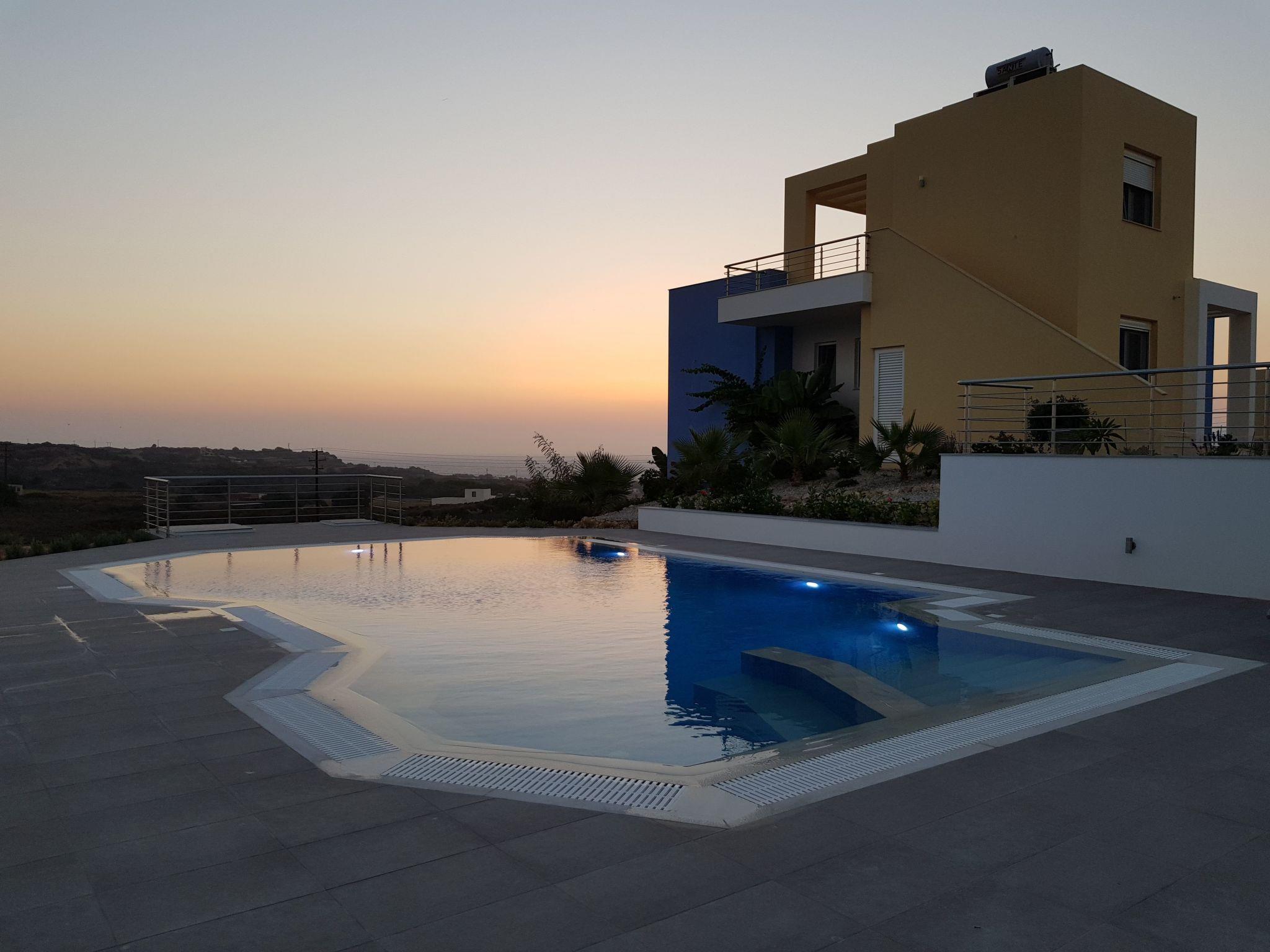 Der Außenbereich dieses Feriendomizils ist wahrhaftig ein Highlight. Ein großer Pool (10x6m), der von April bis Oktober zur alleinigen Nutzung bereitsteht, bietet Erfrischung an warmen Tagen. Die mit verstellbaren Liegen ausgestattete Sonnenterrasse, von der aus Sie den umfassenden Blick auf das Meer und die Bucht genießen können, sowie das Angebot eines Kugelgrills und einer gemütlichen Gartengarnitur laden zu unvergesslichen Momenten unter freiem Himmel ein. Ausreichend Parkplätze vor dem Haus erleichtern die Ankunft und den Aufenthalt.