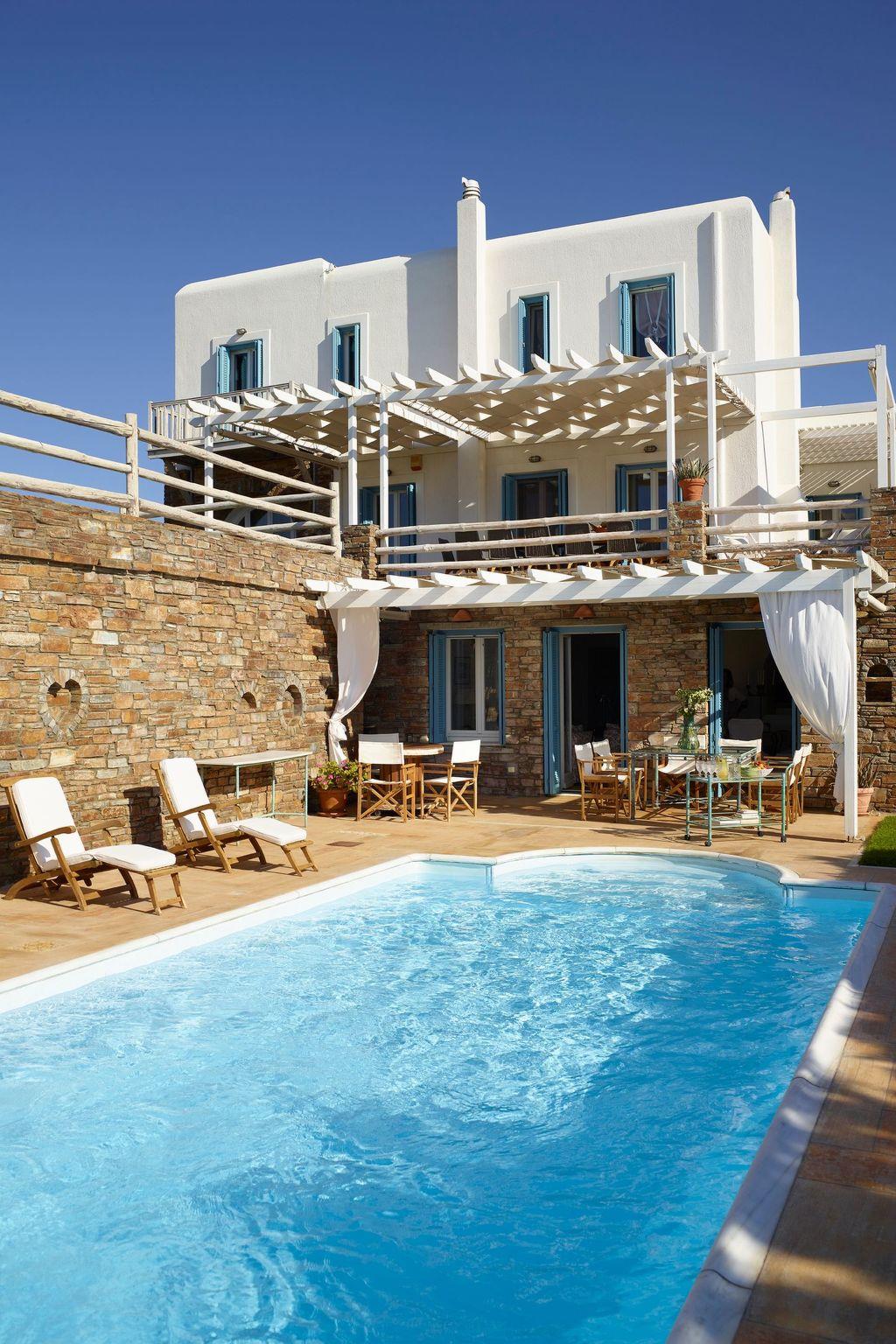 Der nächstgelegene Strand ist der Sandstrand von Kato Fellos (1 km entfernt), während die nächstgelegene Stadt Gavrio ist, wo es Supermärkte, Restaurants, Tavernen, Apotheke und Geldautomaten gibt.
