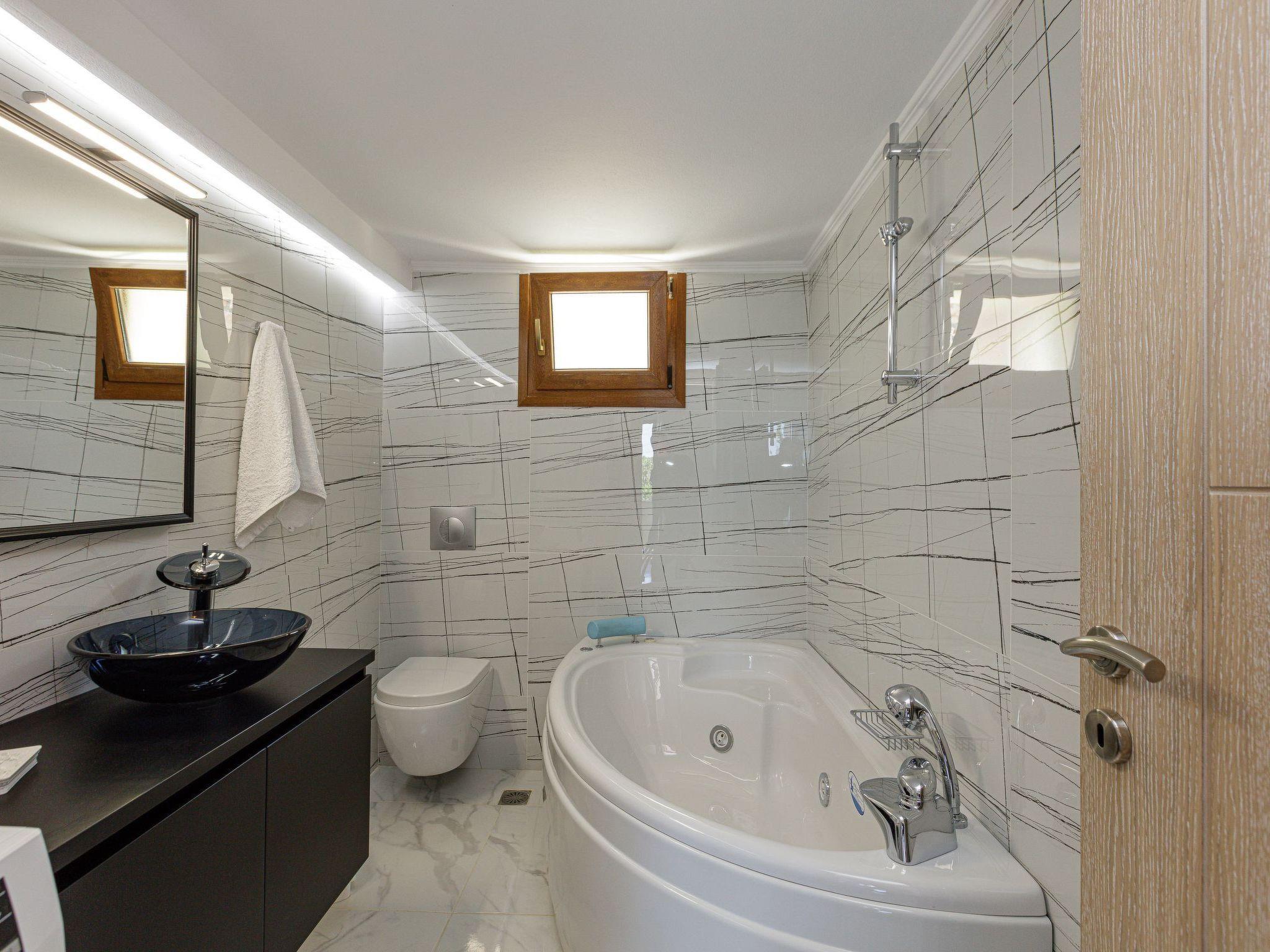 Der Außenbereich der Kampos Villa III kann nur als Sommerfantasie bezeichnet werden! Zunächst einmal gibt es eine Sonnenterrasse mit einem 10x5 großen, beheizten Swimmingpool (50 m2) mit einem 10 m2 großen Kinderbecken, einer überdachten Liegewiese mit Sonnenliegen, Sonnenschirmen und einer Außendusche, auf der Sie den ganzen Tag über die Sonne und die frische Landluft genießen können! Außerdem gibt es eine Sitzecke im Freien und einen schattigen Essbereich im Freien mit Pergola. Zu guter Letzt finden Sie einen aus Stein gemauerten Grill mit einem zusätzlichen Waschbecken, um nach dem Genuss Ihrer hausgemachten Mahlzeiten und dem Essen im Freien aufräumen zu können! Poolheizung: Der Pool kann von März bis Mai, von Oktober bis November und an Tagen mit einer Außentemperatur von weniger als 25 °C beheizt werden. Das Schwimmbad sollte für mindestens 3 Tage pro Zeit beheizt werden. Die Wassertemperatur kann je nach Außentemperatur bis zu 26 °C betragen. Bei Regen kann der Pool nicht genutzt werden.