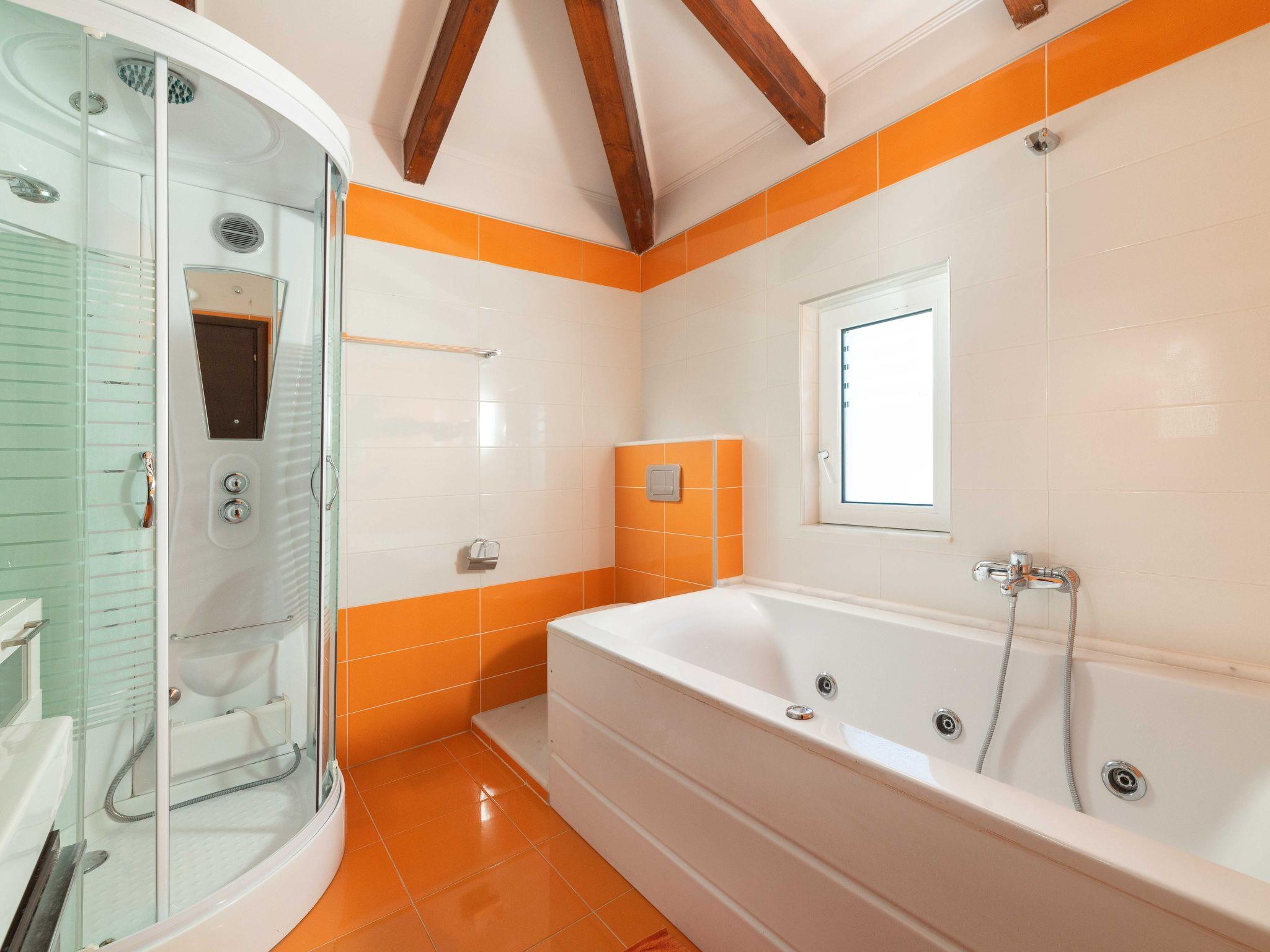 Im Obergeschoss befinden sich ein geräumiges Badezimmer, zwei Schlafzimmer mit Doppelbett und ein Familienzimmer mit (Doppelbett und einem Einzelbett).