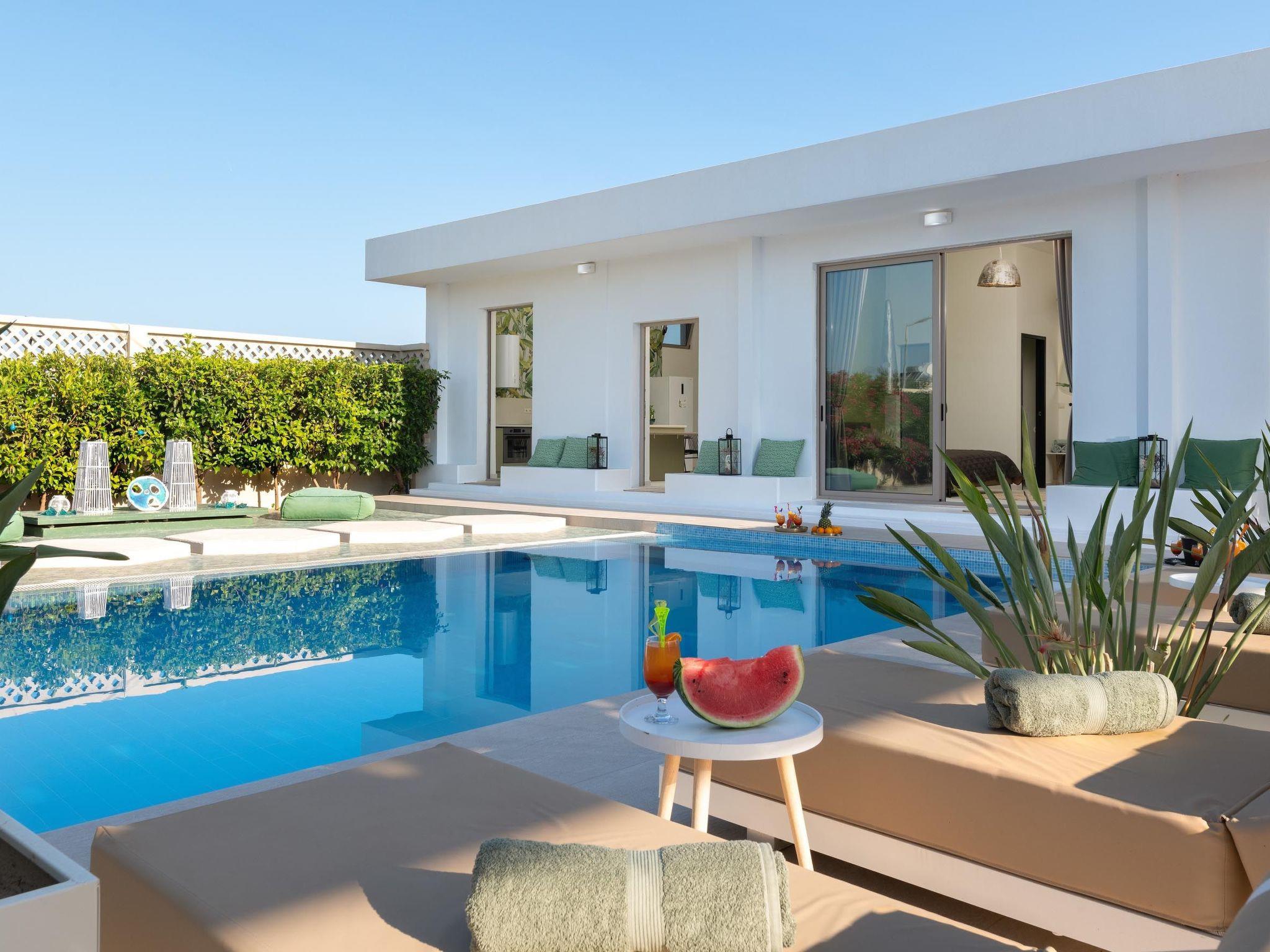 Gaia Villas, ein brandneuer luxuriöser Komplex, bestehend aus Gaia Green Villa und Gaia Blue Villa, garantieren ein unvergessliches, entspannendes und einzigartiges Erlebnis. Die Villa verfügt über 3 voll klimatisierte, große Schlafzimmer mit Doppelbetten und 3 Bädern en suite, Flachbildschirm 55 " Smart TV s sowie große Fenster, die die Verbindung mit der natürlichen Umgebung erleichtern. Wenn jedoch Arbeit auf Sie wartet, machen Sie sich keine Sorgen! Das geräumige Wohnzimmer ist ein wahrhaft entspannender Raum, der von der Aufmerksamkeit des Eigentümers für jedes Design-Detail zeugt ... Die Küche ist komplett ausgestattet, um Ihre kulinarischen Gewohnheiten sowie Ihre Experimente mit lokalen Produkten und Rezepten zu ermöglichen. Der Außenbereich des Anwesens ist ein Highlight für sich. Sie werden Ihre Zeit am privaten großen Überlaufpool mit Hydromassage genießen, da der Tisch mit Sonnenliegen und Pergola ausgestattet ist. Für Ihre ultimative Entspannung gibt es eine Außenbadewanne mit heißem Wasser. Sitzgelegenheiten im Freien sind auch eine schöne Veranda mit Grill und einem Esstisch im Freien gehören.