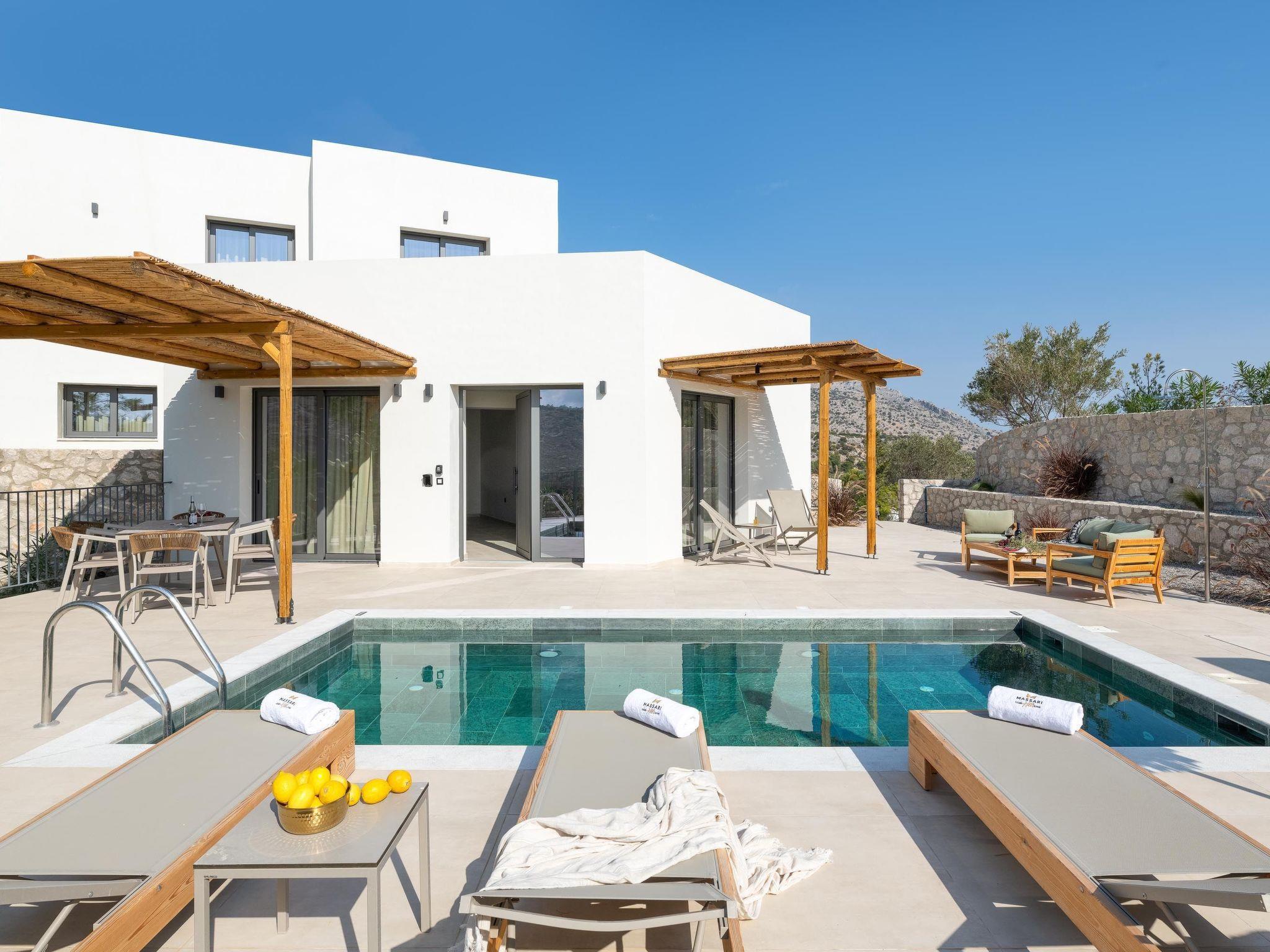 Massari Hills Luxury Living sind 15 fantastische, brandneue Immobilien, die in einzigartiger, minimalistischer Architektur mit einzigartigen, in warmen Farben gehaltenen Details entworfen wurden. Sie befinden sich in Massari, nur 5 Autominuten vom Charaki-Strand entfernt. Alle modernen Villen bieten Ihnen jeglichen Komfort, private Swimmingpools und Terrassen in einem einzigartigen Design. Es gibt einen gemeinsamen Fitnessraum im Freien und jede Villa bietet eine Grillanlage. Jedes Haus bietet Platz für bis zu 8 Gäste.
