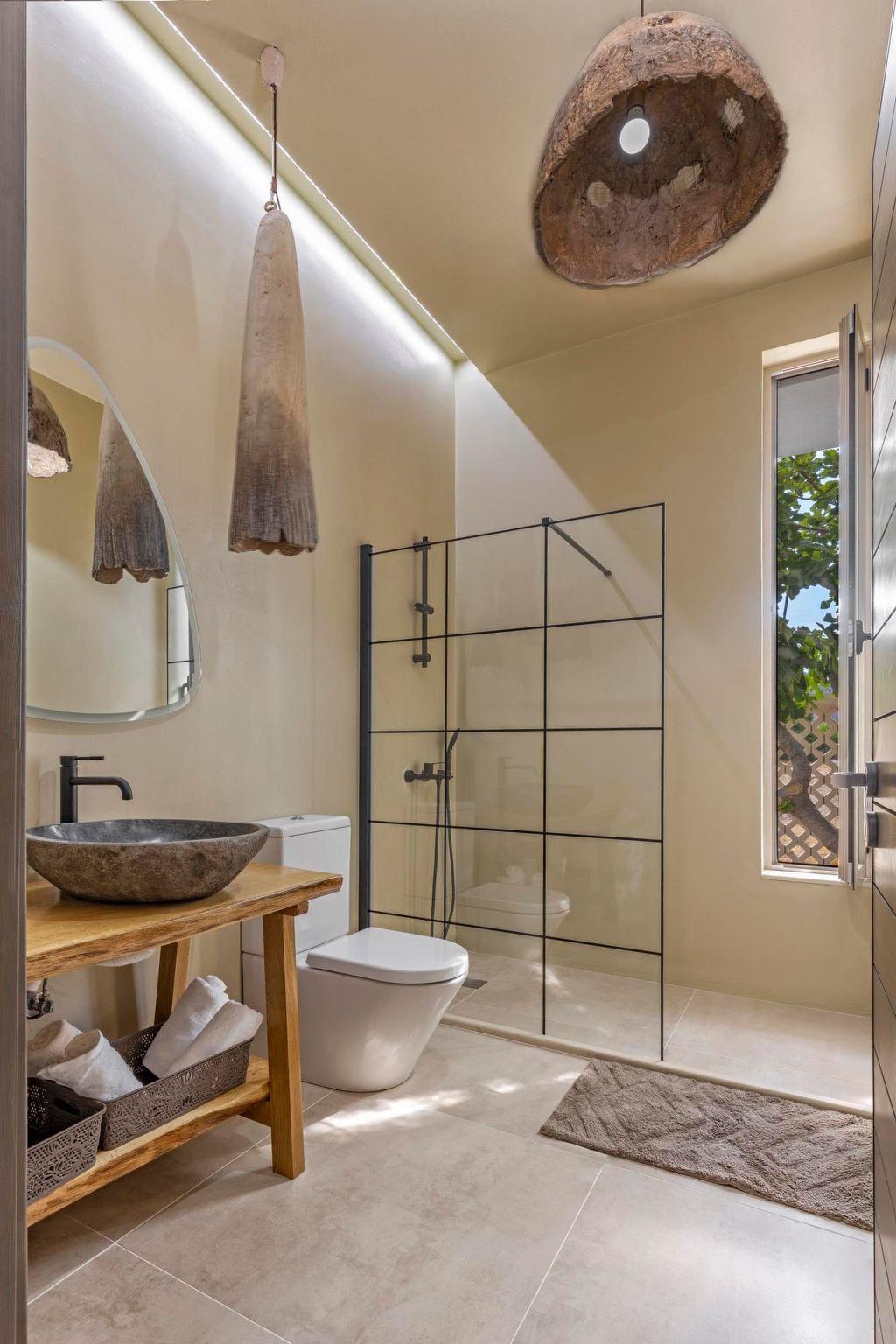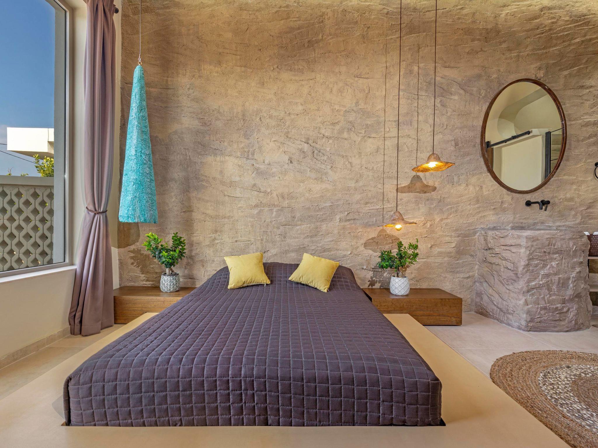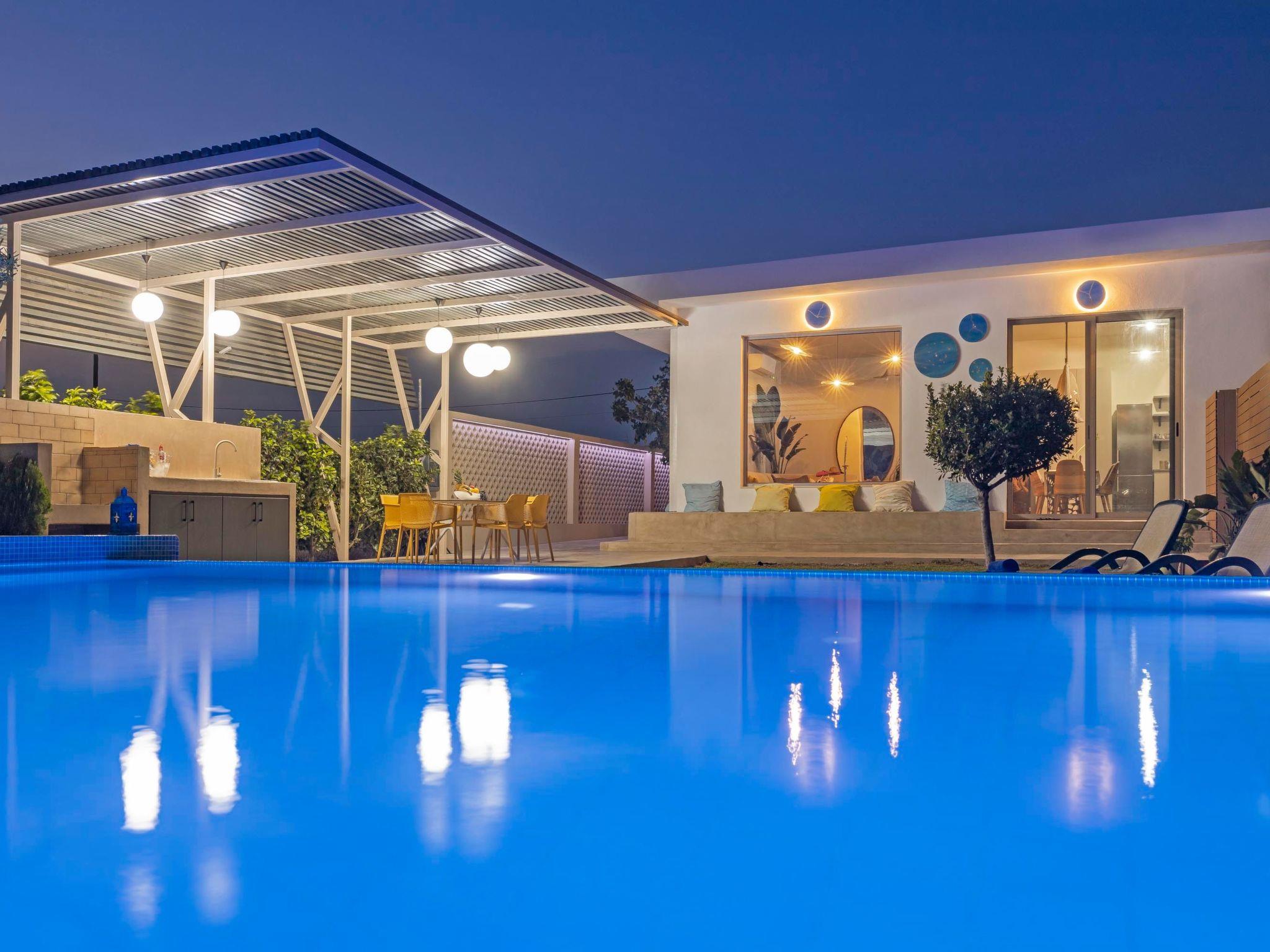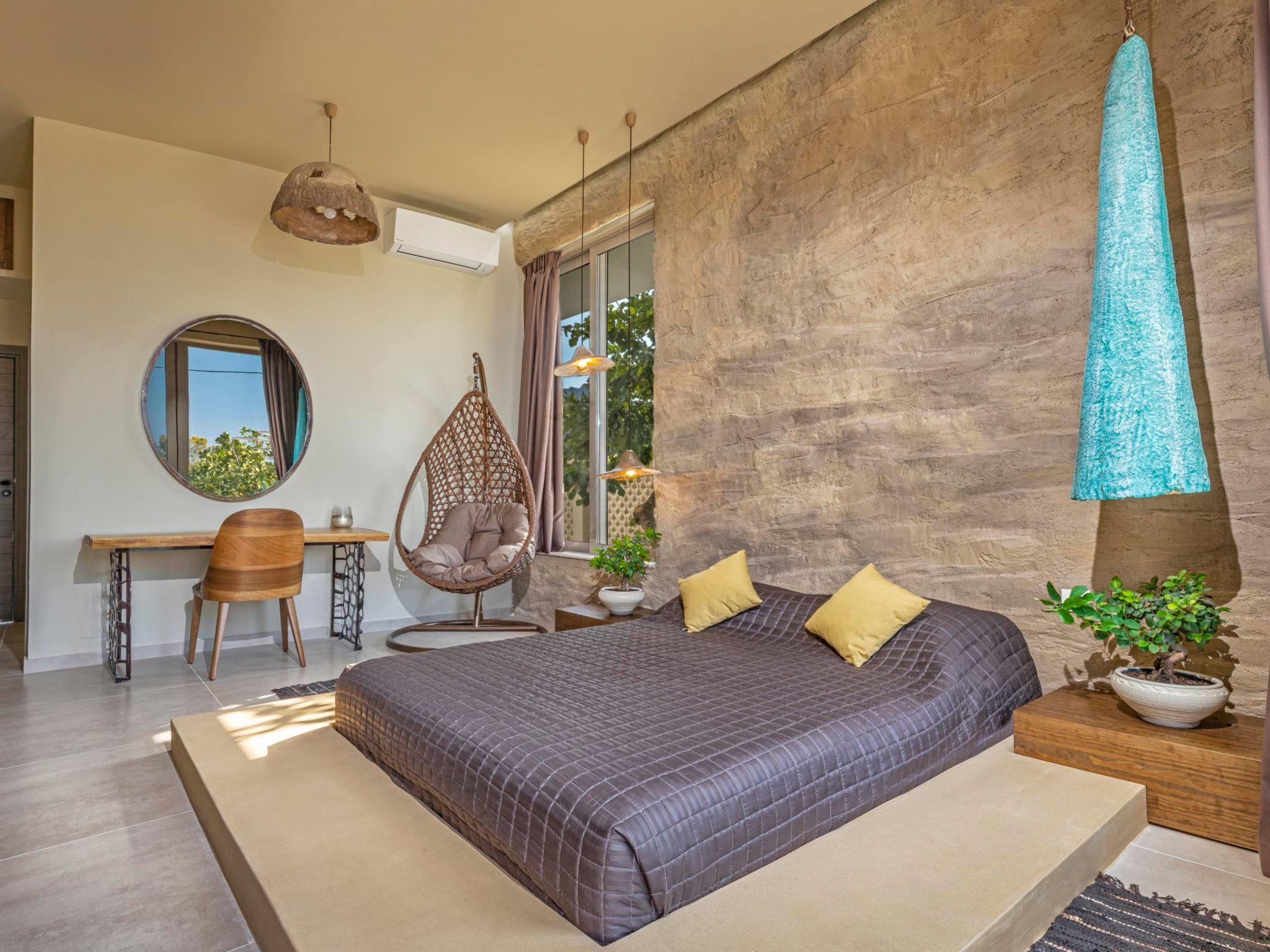Die Villa verfügt über 2 vollklimatisierte Schlafzimmer mit Doppelbetten in warmen Farbtönen und einem einzigartigen böhmischen Design. Es gibt 2 einzigartige Badezimmer mit einer Dusche. Die Küche ist komplett ausgestattet, um Ihre kulinarischen Gewohnheiten sowie Ihre Experimente mit lokalen Produkten und Rezepten zu ermöglichen. Das geräumige Wohnzimmer ist besonders einladend, mit handgefertigten Möbeln und viel Platz, den Sie nach Belieben nutzen können. In jedem Schlafzimmer gibt es einen Flachbildschirm mit Satellitenkanälen und kostenloses Wi-Fi im gesamten Haus. Der Außenbereich des Hauses ist ein Highlight für sich. Sie werden Ihre Zeit am privaten Swimmingpool genießen, denn die Terrasse ist mit Sonnenliegen und einer Pergola ausgestattet. Zu den Sitzgelegenheiten im Freien gehören die Terrasse und eine schöne Veranda mit Grill und Esstisch im Freien mit Blick auf den berühmten Tsampika-Hügel.