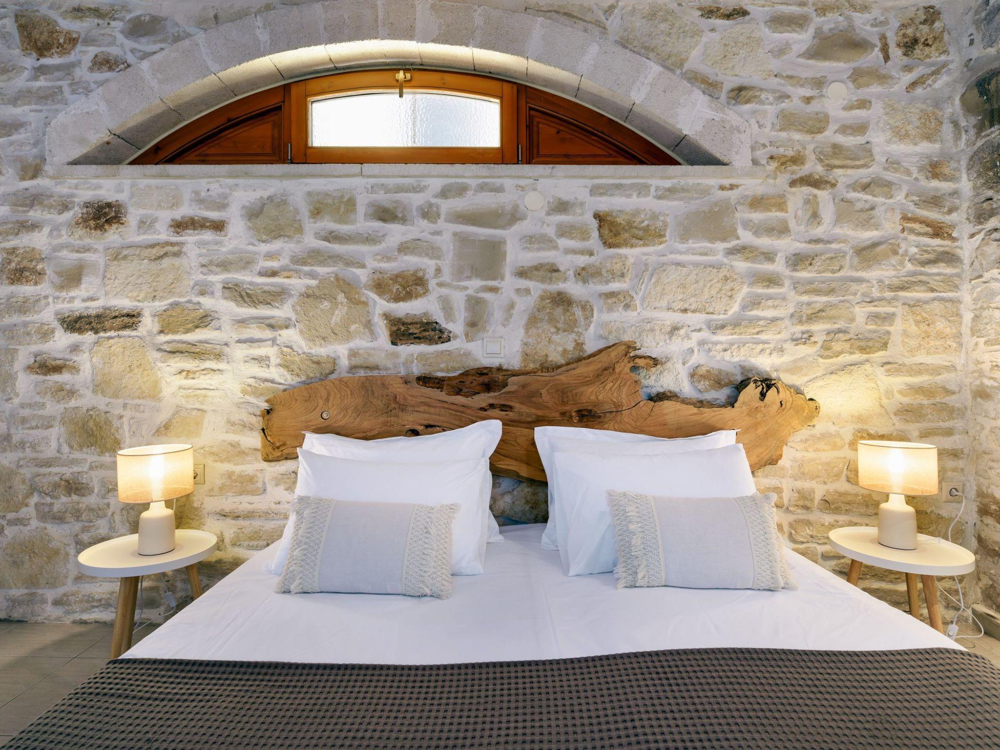 Das erste Apartment ist das größte der drei und verfügt über zwei geräumige Schlafzimmer mit eigenem Bad, Kingsize-Betten und Klimaanlage. Ein gemütliches Wohnzimmer mit eingebautem Kamin und bequemen Sitzgelegenheiten schafft eine einladende Atmosphäre zum Entspannen. Die voll ausgestattete Küche verfügt über einen Geschirrspüler, einen Backofen, einen Herd und eine Nespresso-Maschine und ist damit ideal für Gäste, die im Urlaub auf Kreta gerne selbst kochen.