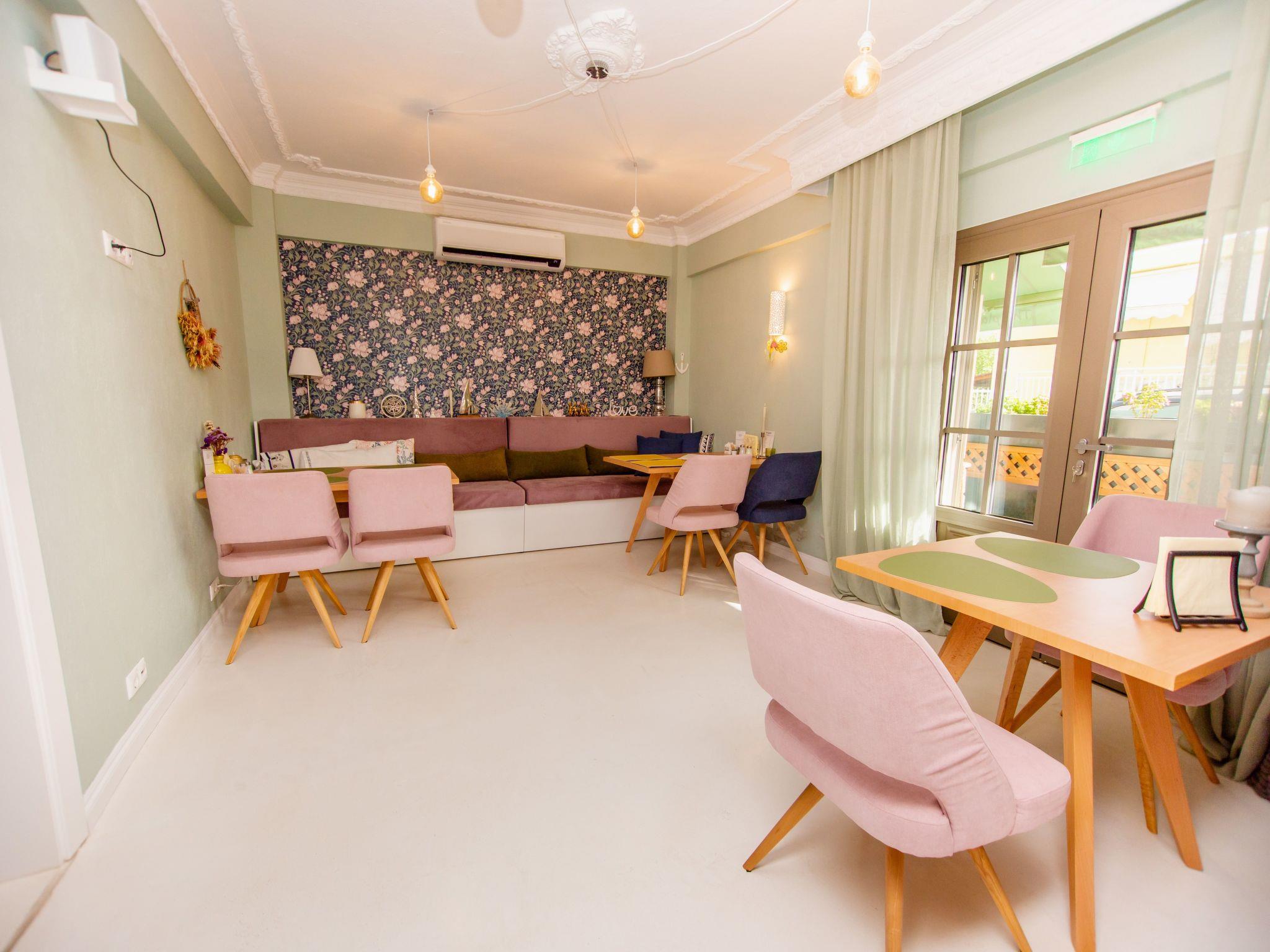 Unser Apartment Haus liegt mitten in Nea Vrasna. Sehr ruhig und trotzdem sehr zentral. Zum 8 km langen Sandstrand sind es nur 4 - 5 Gehminuten (230m.). Alle Einkaufsmöglichkeiten sowie Bars und die vielen Tavernen sind sehr gut zu Fuß erreichbar. Der Bäcker ist nur 100 m vom Haus entfernt. Zum Flughafen Thessaloniki sind es 90 km. Über die neue Autobahn A2 erreichen Sie den Flughafen in einer Stunde.