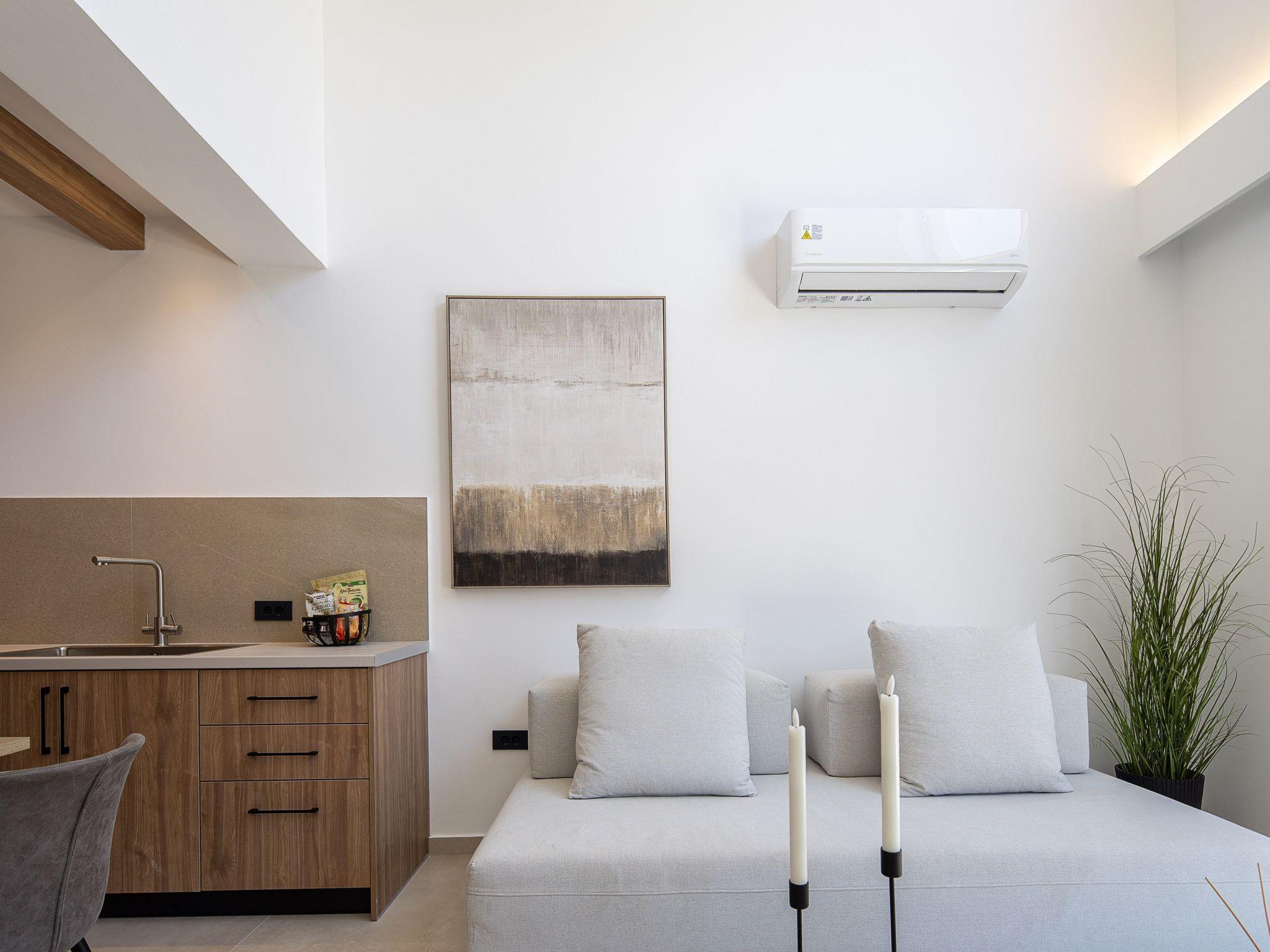 Die Villen verfügen über eine Wohnfläche von ca. 80 m² im Innenbereich und 90 m² im Außenbereich und sind somit ideal für Gruppen oder Familien. Die Villen verfügen über einen geräumigen, offenen Wohnbereich, in dem die Gäste auf einem bequemen Sofa entspannen und moderne Annehmlichkeiten wie einen 50-Zoll-Smart-TV mit Satellitenkanälen genießen können. Große Schiebetüren bieten Zugang zu privaten Terrassen oder zum Poolbereich, so dass ein einfacher Übergang zwischen Innen- und Außenbereich entsteht. Die Villa verfügt über eine voll funktionsfähige Küche, in der die Gäste mit Leichtigkeit Mahlzeiten zubereiten können, und der Essbereich bietet einen einladenden Raum für gemeinsame Mahlzeiten. Auf dem Sofa im Wohnbereich kann auf Anfrage und gegen Aufpreis ein weiterer Gast untergebracht werden. Das Sofa ist sowohl für Erwachsene als auch für Kinder bequem, da es eine Größe von 1,10*2,20 m hat.