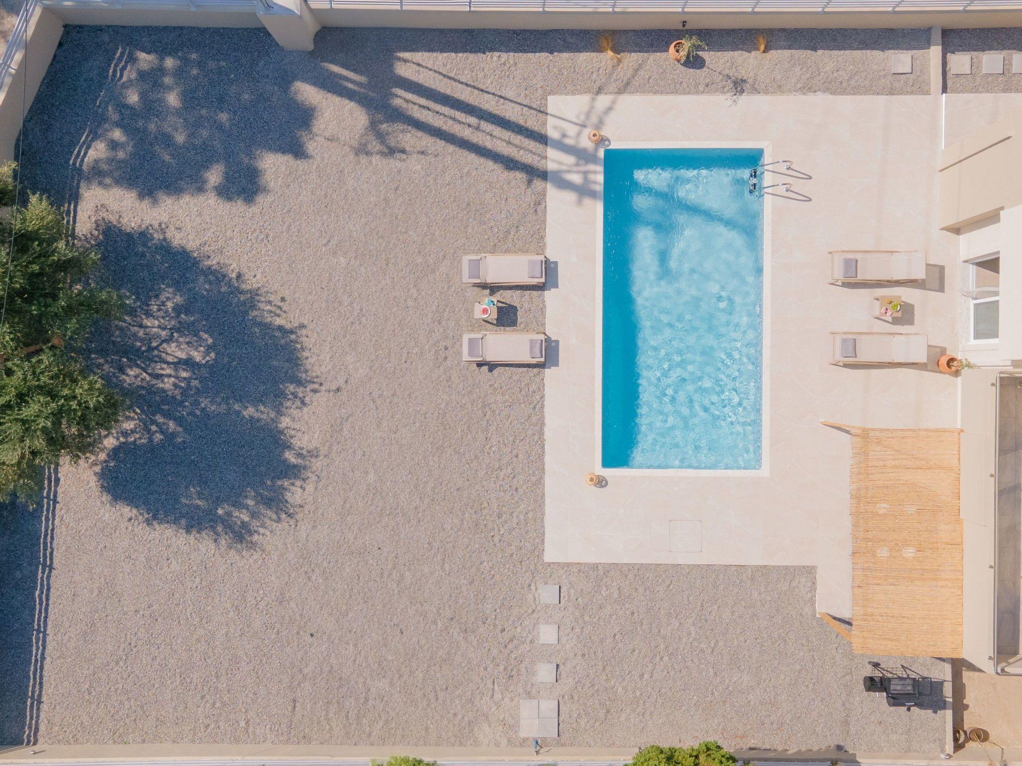 Dieses wahre Juwel verfügt über drei schön gestaltete, klimatisierte Schlafzimmer. Ein Zimmer bietet ein bequemes Doppelbett, ein anderes ist mit zwei Einzelbetten ausgestattet und das dritte verfügt über ein Einzelbett und ein Feldbett für zusätzliche Flexibilität. Diese Kombination sorgt für ausreichend Platz und Komfort für die Gäste. Außerdem gibt es ein bequemes Sofa im göttlichen Wohnbereich und 2 Bäder mit Dusche. Die Gäste finden eine voll ausgestattete Küche vor, die sich für die Zubereitung aller Mahlzeiten eignet. Die moderne Küche teilt sich den Bereich mit einem Esstisch, der in weißen Tönen gestaltet und dekoriert ist. Es gibt kostenlosen Wi-Fi-Zugang im gesamten Haus sowie einen Smart-TV. Der Außenbereich ist ebenso schön wie der Innenbereich. Außerdem gibt es Grillmöglichkeiten und eine Sitzecke, wo Sie eine Mahlzeit zubereiten und ein Treffen mit Ihren Lieben genießen können, umgeben von modernen Möbeln.
