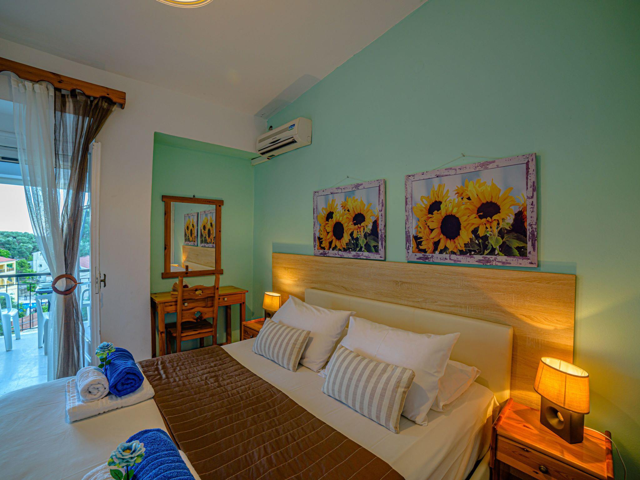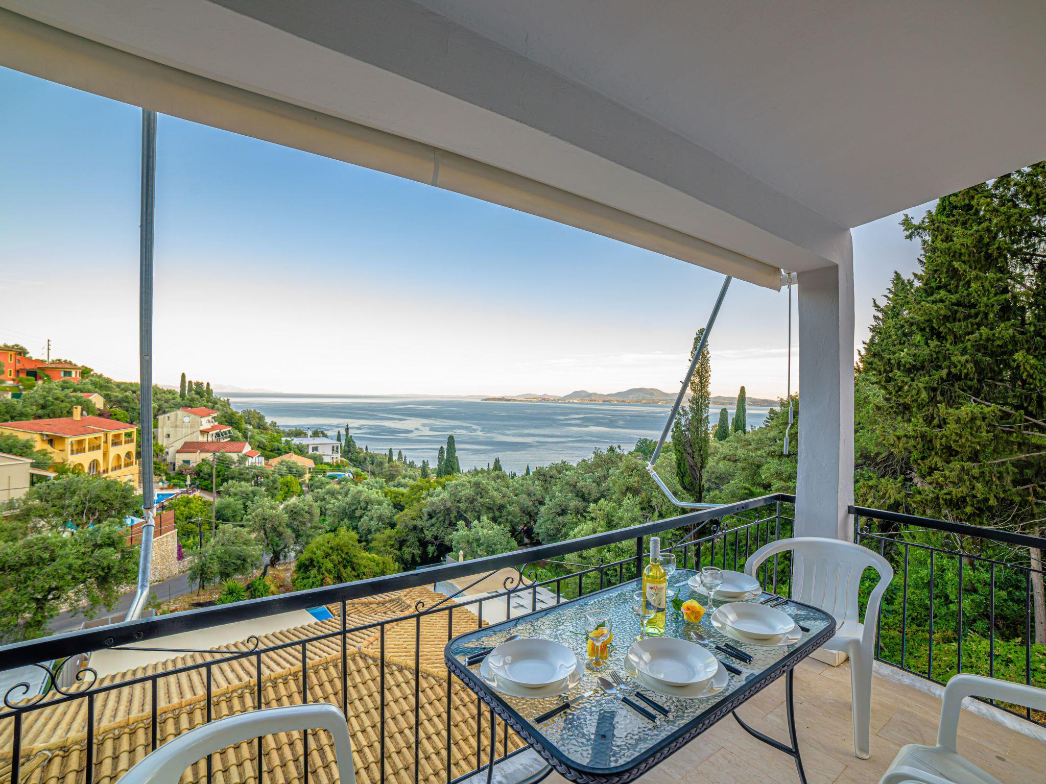 Mit einem atemberaubenden weiten Blick auf die Küstenlinie von Korfu, Zeus Wohnung hat seinen EIGENEN privaten Gebrauch POOL (Verwendung nur für eine Wohnung) 2 Schlafzimmer, Essbereich Bad, wurden liebevoll eingerichtet - Voll ausgestattete Küche, Wohnzimmer, Bad in perfekter Lage nur 800 Meter über Skinos Strand von Nissaki.