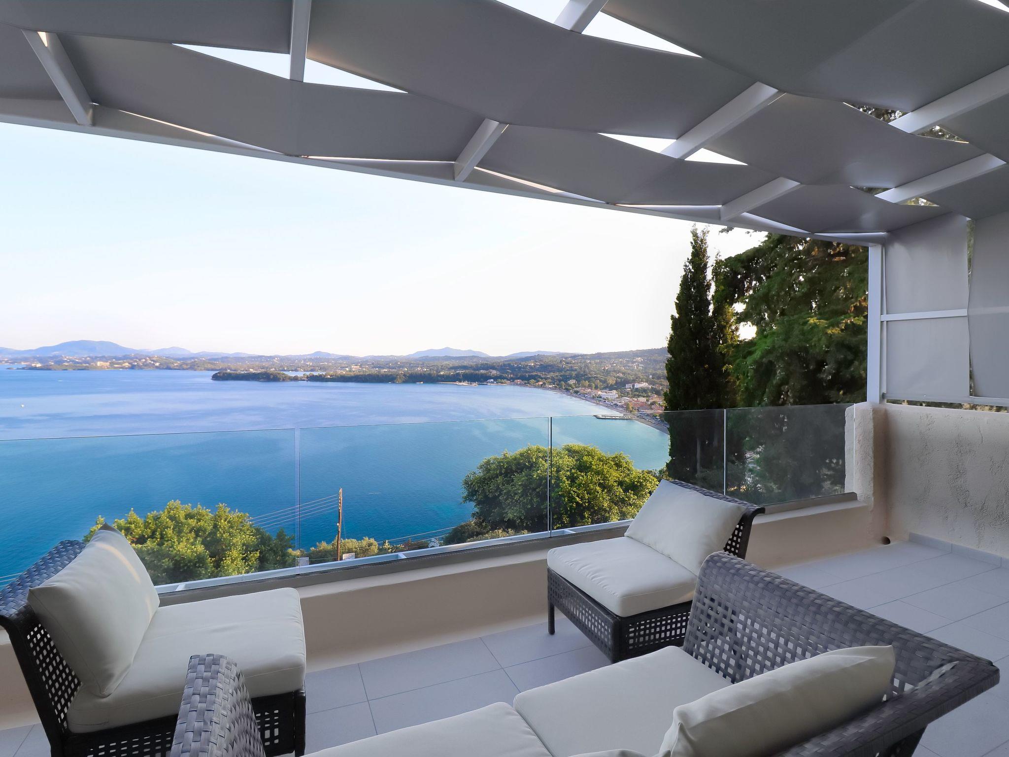 Villa Faiax in einer ruhigen Lage mit freiem Meerblick über die Bucht von Ipsos, zwei Minuten zu Fuß zum Restaurant, Café & Bar (Grand Balcon & Off Town) und 15 Minuten zu Fuß hinunter zum Strand & Water Front Restaurants von Ipsos beach.Suitable für bis zu 10 Personen, ideal für große Familien und Gruppen von Besuchern. Dreistöckiges Gebäude, das aus 4 Schlafzimmern besteht, alle mit eigenem Bad, großer Pool mit Panoramablick aufs Meer, voll ausgestattete Küche, Smart-TV, WIFI, AC. Es gibt eine geräumige offene versunkene Lounge mit bequemen Sofas, riesige Wand-TV und Essbereich alle mit Französisch Fenster öffnen sich auf die sehr große Terrasse mit Glaswänden, um die atemberaubende Aussicht zu genießen.Im zweiten Stock gibt es die geräumige Lounge mit stilvollen modernen Möbeln und Atmosphäre, Smart led TV, Esszimmer und voll ausgestattete moderne Küche. Das große Glasfenster bietet viel Licht und Kühle, während Sie von der Terrasse des Wohnzimmers aus den herrlichen Meerblick genießen können! Die Wendeltreppe bringt Sie in das Obergeschoss, wo sich drei große, voll ausgestattete Schlafzimmer befinden, jedes mit super bequemen Betten, die einen perfekten Schlaf garantieren (ein Kingsize-Schlafzimmer und zwei Zweibettzimmer mit Einzelbetten, die zusammengeschoben werden können, um Super-Kings zu bilden). Jedes Schlafzimmer hat ein eigenes modernes Duschbad, einen an der Wand montierten Flachbildfernseher, Einbauschränke und einen Safe Die große, voll ausgestattete Küche steht Ihnen zur Verfügung, um Ihre Mahlzeiten und Ihr Frühstück zuzubereiten. Sie verfügt über eine Mikrowelle, eine Nespresso-Kaffeemaschine, einen Kühlschrank, einen Geschirrspüler, ein Cerankochfeld, einen Backofen, einen Toaster und einen Wasserkocher.Im Außenbereich dominiert der Pool die Umgebung mit seiner berauschenden Ruhe. Vielleicht möchten Sie sich sogar mit einer traditionellen griechischen Mahlzeit verwöhnen lassen, indem Sie das B.B.Q. benutzen. Der große Essbereich bietet Platz für Grill- oder Cocktailabende, bei denen Sie die herrliche Aussicht genießen können. Es gibt auch Duschen im Freien und kleine Kühlschränke, die den Poolbereich versorgen. Schließlich bietet ein geräumiger Garagenbereich Schatten für bis zu zwei Autos. Die Lage ermöglicht eine große Privatsphäre und ist gleichzeitig nur wenige Gehminuten vom schönen Strand von Ipsos entfernt. Die strategische Lage der Villa gibt Ihnen die Möglichkeit, Korfu-Stadt, den größten Wasserpark auf der Insel sowie die beliebtesten Strände innerhalb von 20 Minuten Fahrt zu besuchen.