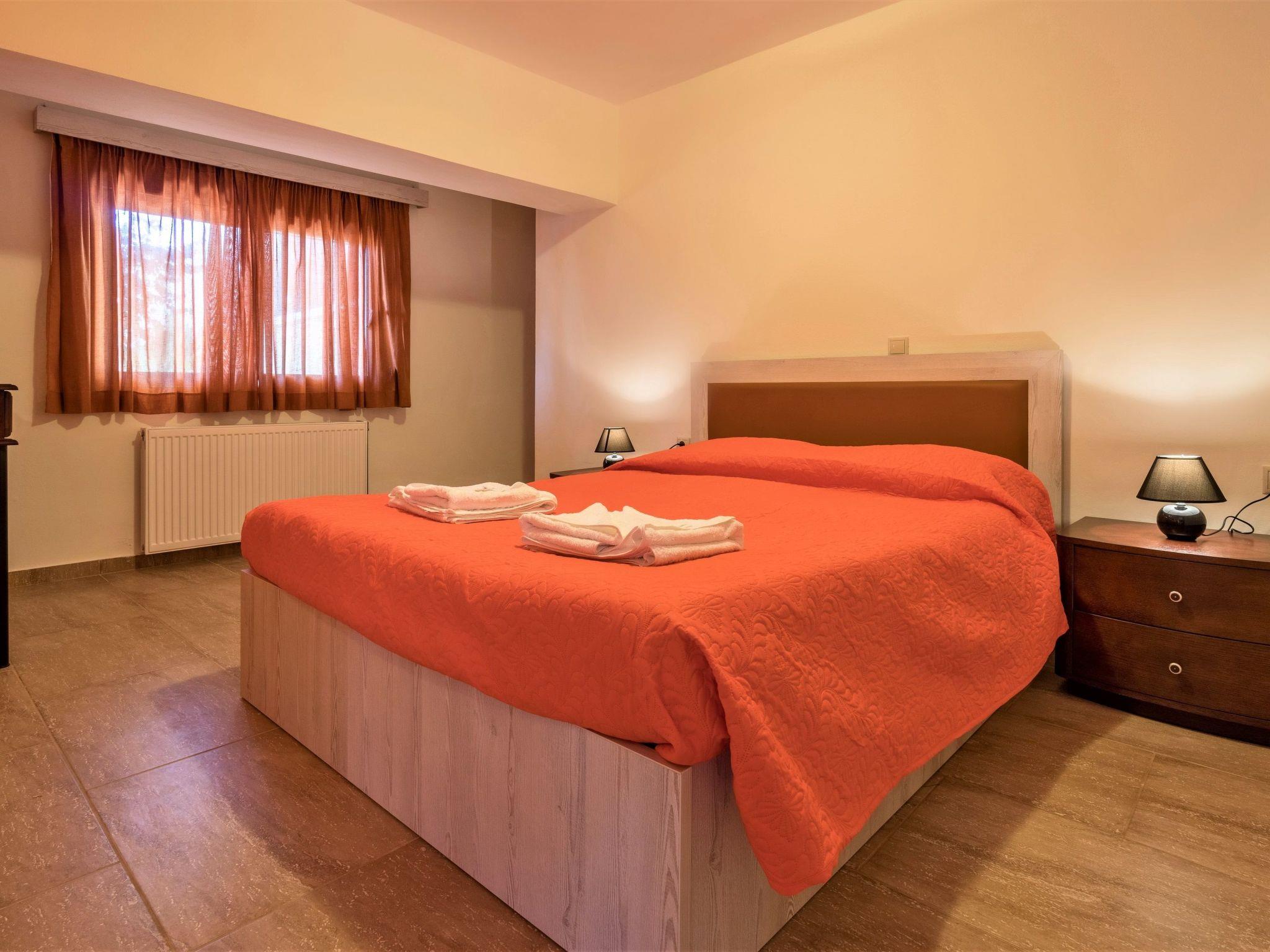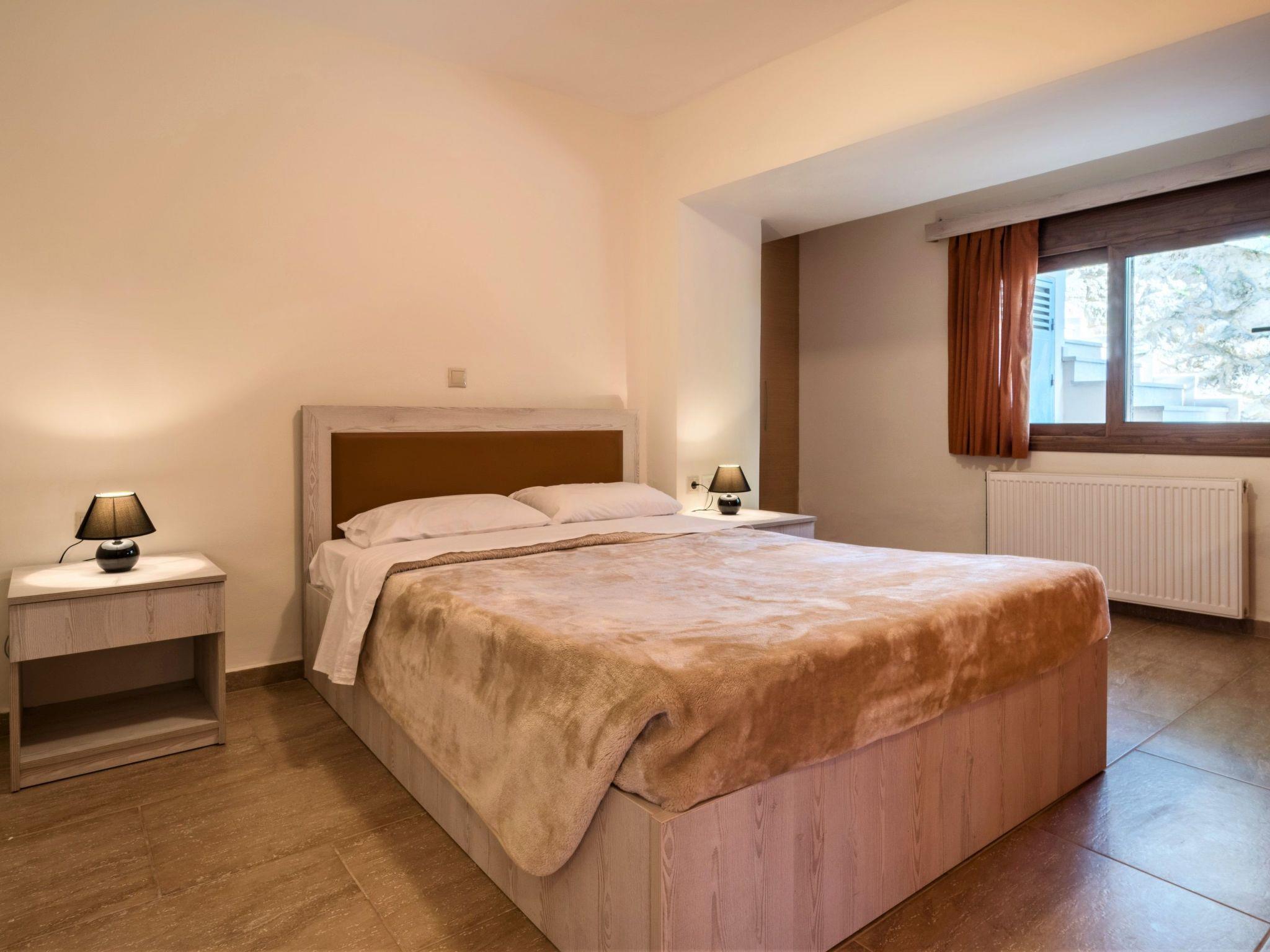 Zwei weitere Wohnungen befinden sich im zweiten Stock, die Häuser "Arethousa" und "Hestia", die identisch sind und sich über 2 Etagen erstrecken. Im Erdgeschoss befinden sich ein luftiges Wohnzimmer mit Küche, ein Doppelschlafzimmer und ein Badezimmer mit Regendusche, Toilette, Handwaschbecken und Haartrockner, während sich im Obergeschoss 2 weitere Doppelschlafzimmer sowie ein Badezimmer mit Hydromassage, Toilette, Handwaschbecken und Haartrockner befinden. Von den Balkonen aus hat man einen herrlichen Panoramablick auf das Meer und die Berge. In jedem dieser Häuser können bis zu 7 Personen übernachten, 6 in den Schlafzimmern und 1 im Wohnzimmer.