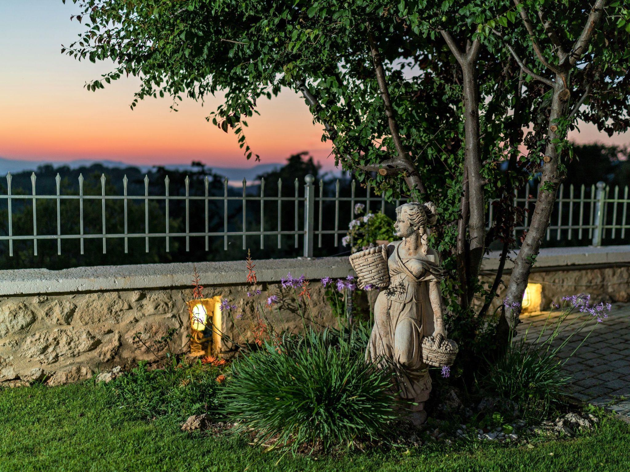 Villa Zeus, wurde entworfen, um zu beeindrucken. Wunderschöne Gärten, eine überdachte Außenküche, Panoramablick und ein großer privater Pool werden die Ergänzungen für einen außergewöhnlichen Urlaub sein. Es gibt einen großen Garten mit Rasen, Blumen und Bäumen. Der private Pool befindet sich in der Mitte des Gartens. Er ist mehr als 50 qm groß (Tiefe 1,40 m), hat einen separaten Bereich für Kinder, römische Stufen und ist nachts gut beleuchtet. Sonnenliegen und Sonnenschirme sind ebenfalls vorhanden. Neben dem Pool gibt es einen großen Essbereich im Freien, wo die Gäste einen großen gemauerten Grill, einen Holzofen und eine Spüle finden können. Dies ist der perfekte Ort, um zu kochen oder gemeinsam zu speisen. ? Eine hübsche Bank ist ebenfalls vorhanden, so dass Sie den Sonnenuntergang in aller Ruhe und Entspannung genießen können.