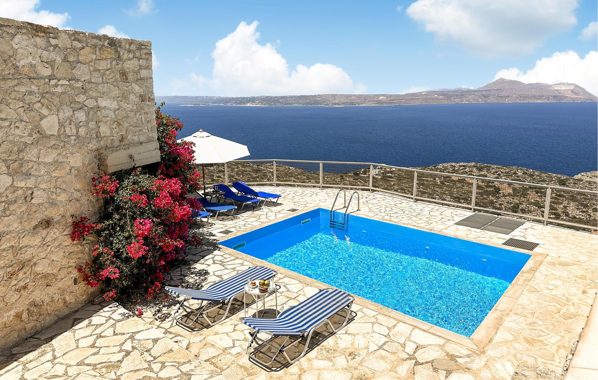 Genießen Sie einen herrlichen Blick auf das Meer in diesem komfortablen Ferienhaus mit Pool.