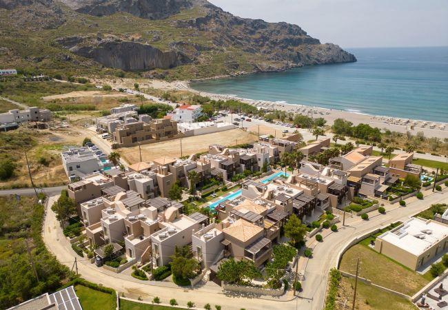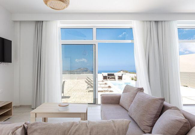 Petres 1 ist eine stilvolle, 100 Quadratmeter große Villa, die in einem kleinen Komplex von vier exklusiven Immobilien am Rande des Dorfes Mariou im südlichen Kreta liegt. Nur eine kurze Fahrt von makelosen Sandstränden entfernt, bietet diese ruhige Unterkunft atemberaubende Ausblicke auf die Süd-Kretische See und die umgebende Naturlandschaft.