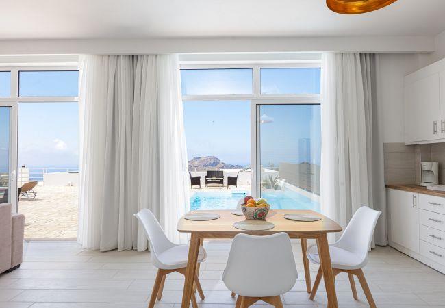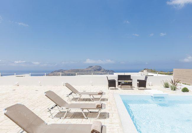 Ausstattungsmerkmale umfassen Vollklimatisierung, schnelles WLAN im gesamten Bereich und einen privaten Swimmingpool (25 m², 1,40 m tief), der von Außensitzgelegenheiten und Sonnenliegen umgeben ist - ein idealer Ort, um die Sonne und den atemberaubenden Meerblick zu genießen. Privates Parken ist direkt vor der Villa verfügbar.