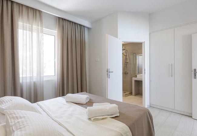 Die Villa verfügt über eine voll ausgestattete, moderne Küche, die perfekt zum Zubereiten von Mahlzeiten mit lokalen Zutaten ist. Zwei komfortable Schlafzimmer bieten Platz für bis zu vier Gäste: eines mit einem Kingsize-Bett (1,60 x 2,00 m) und das andere mit zwei Einzelbetten (0,90 x 2,00 m jeweils), die auf Wunsch zu einem Queensize-Bett (1,80 x 2,00 m) zusammengestellt werden können. Beide Schlafzimmer verfügen über eigene En-Suite-Badezimmer mit zeitgemäßen Armaturen.