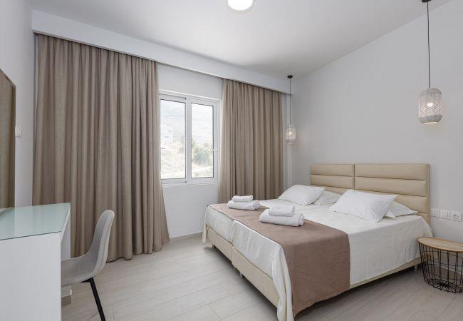 Petres 2 ist eine stilvolle, 100 Quadratmeter große Villa, die sich in einem kleinen Komplex von vier exklusiven Immobilien am Rande des Dorfes Mariou im südlichen Kreta befindet. Nur eine kurze Fahrt von makelosen Sandstränden entfernt, bietet diese ruhige Unterkunft atemberaubende Ausblicke auf die Süd-Kretische See und die umgebende Naturlandschaft.