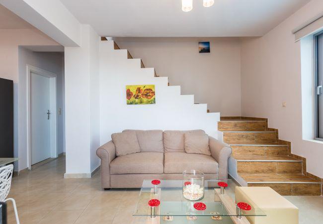 Sunset ist eine reizvolle Anlage mit 3 identischen modernen Maisonettes, die einen gemeinsamen Swimmingpool nutzen. Diese charmante Anlage liegt im Süden von Kreta am Rande des Dorfes Mariou, nur eine kurze Fahrt von den Sandstränden entfernt. Hier können Sie die atemberaubende Aussicht auf das Libysche Meer und die umliegende Landschaft genießen. Jede Maisonette verfügt über ein Erdgeschoss mit einem geräumigen und komfortablen Wohnzimmer mit einer großen Couch und einem Esstisch, einem Satellitenfernseher, Heizung und faszinierenden Ausblicken. Darüber hinaus gibt es eine voll ausgestattete moderne offene Küche und ein Gäste-WC.