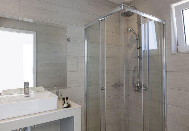 Die Villa verfügt über eine voll ausgestattete, moderne Küche, die perfekt zum Zubereiten von Mahlzeiten mit lokalen Zutaten ist. Zwei komfortable Schlafzimmer bieten Platz für bis zu vier Gäste: eines mit einem Kingsize-Bett (1,60 x 2,00 m) und das andere mit zwei Einzelbetten (0,90 x 2,00 m jeweils), die auf Wunsch zu einem Queensize-Bett (1,80 x 2,00 m) zusammengestellt werden können. Beide Schlafzimmer verfügen über eigene En-Suite-Badezimmer mit zeitgemäßen Armaturen.