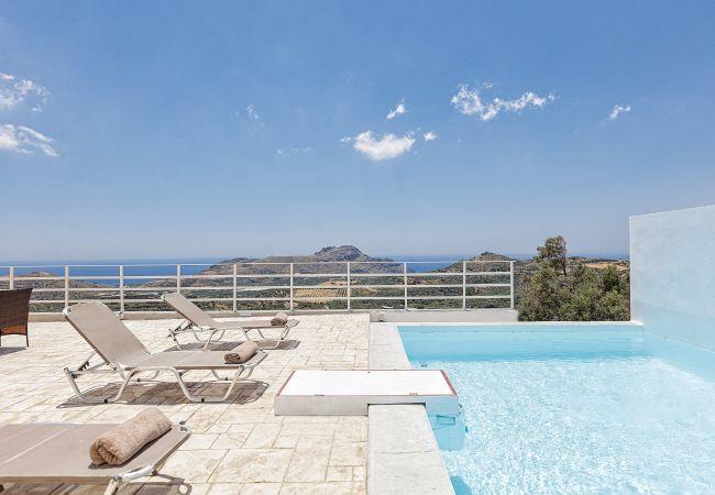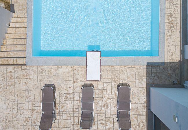 Ausstattungsmerkmale umfassen Vollklimatisierung, schnelles WLAN im gesamten Bereich und einen privaten Swimmingpool (25 m², 1,40 m tief), der von Außensitzgelegenheiten und Sonnenliegen umgeben ist - ein idealer Ort, um die Sonne und den atemberaubenden Meerblick zu genießen. Privates Parken ist direkt vor der Villa verfügbar.