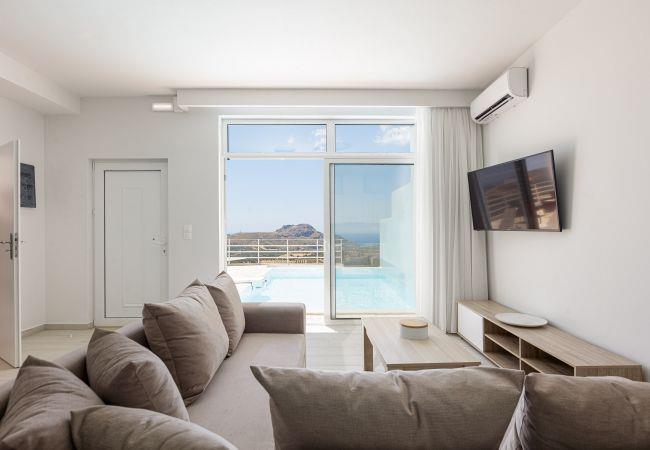 Petres 4 ist eine stilvolle, 100 Quadratmeter große Villa, die sich in einem kleinen Komplex von vier exklusiven Immobilien am Rande des Dorfes Mariou im südlichen Kreta befindet. Nur eine kurze Fahrt von makelosen Sandstränden entfernt, bietet diese ruhige Unterkunft atemberaubende Ausblicke auf die Süd-Kretische See und die umgebende Naturlandschaft.