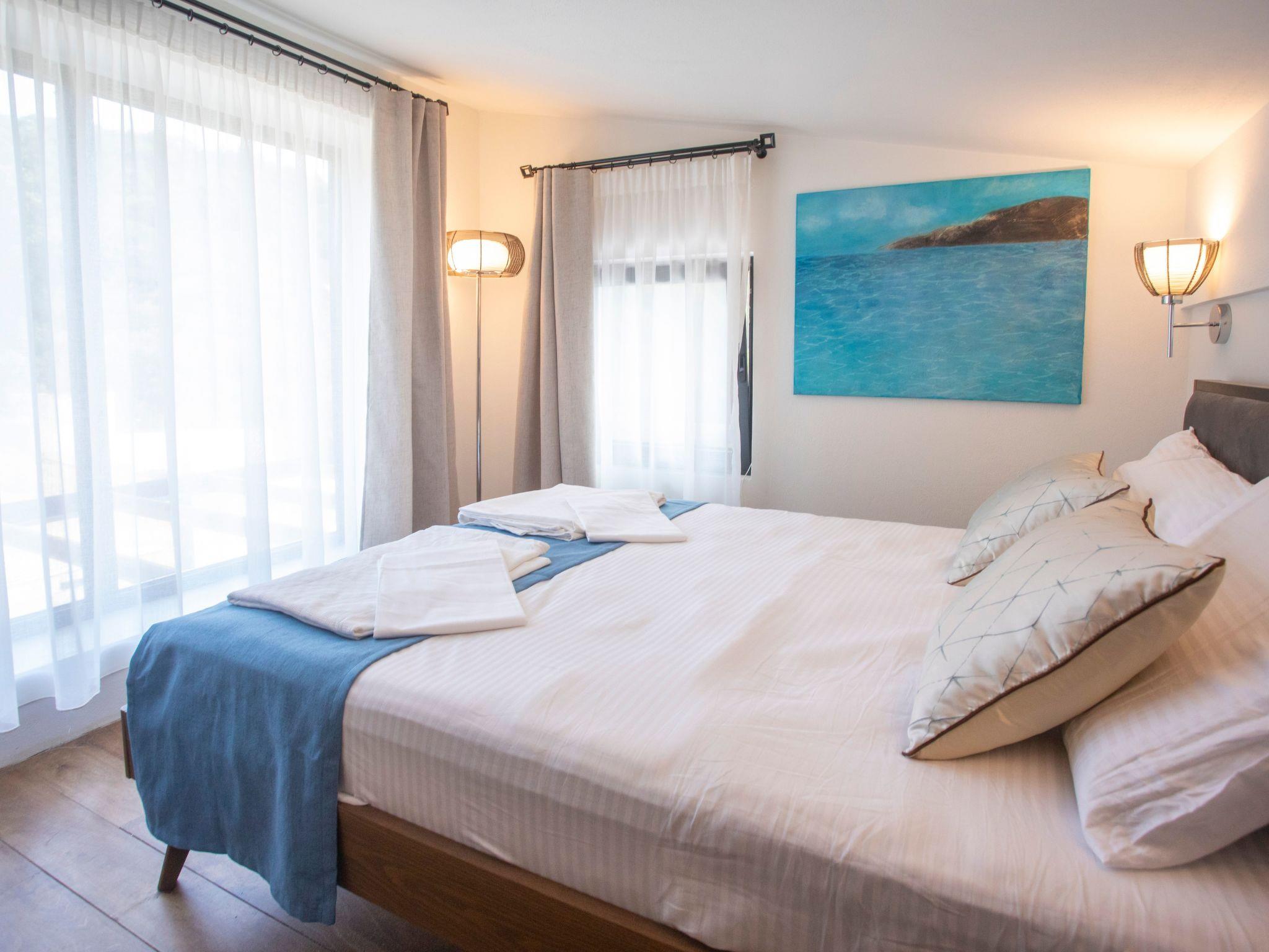 Im Inneren verfügt jede Villa über drei geräumige Schlafzimmer mit eigenem Bad, raffinierte Wohnbereiche im Innen- und Außenbereich und eine voll ausgestattete Küche, die sowohl für Familientreffen als auch für Momente der persönlichen Einsamkeit geeignet ist. Die Liebe zum Detail ist überall spürbar, mit maßgeschneiderten Möbeln und ausgewählten Kunstwerken, die eine Hommage an die natürliche Schönheit und den kulturellen Geist von Skiathos sind. Die Innenräume sind in Wärme, Kunstfertigkeit und persönliche Akzente getaucht, mit Originalgemälden, die von den Landschaften der Insel inspiriert sind und jedem Raum eine einzigartige und einladende Aura verleihen.