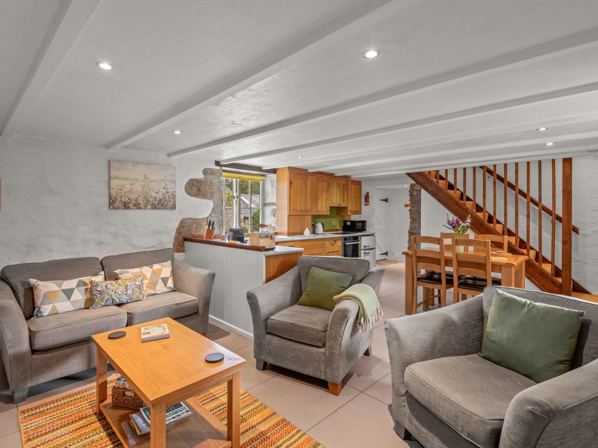 Der offene Grundriss im Erdgeschoss besteht aus einer Wohnküche und einem Wohnbereich mit Holz-Kaminofen, die beiden Schlafzimmer im ersten Stock sind gemütlich und einladend mit frischer Baumwollbettwäsche und weichen Überwürfen bezogen. Vor kurzem wurde ein stilvolles neues Badezimmer (2019) mit beleuchtetem Spiegel, neuen Fliesen, Beleuchtungskörpern, neuen Fußböden und einer großen, leistungsstarken Dusche installiert. Inklusive Extras: Frische Blumen Laib leckeres Brot Cornish Cream Tea Unbegrenzter Zugriff auf schnelles Breitband Starter Holzkorb & Anzünden für den Holzbrenner Starterpaket mit Nespresso-Kaffeepads Baumwollleinen Weiche und flauschige Handtücher Fön Cottage Eigenschaften: Holzofen mit erstem Holzkorb und Anzünden vorhanden (zusätzliche Vorräte können bei uns zu einem sehr günstigen Preis gekauft bzw. bestellt werden) Zentralheizung im gesamten Haus TV mit DVB-T Radio mit BlueTooth-Technologie Amerikanische Kaffeekanne / Filterkaffeemaschine Nespresso-Maschine & Pads Schnelles drahtloses Breitband Großes bequemes Sofa mit zwei passenden Sesseln Neu installiertes Duschbad mit geräumiger ebenerdiger Dusche Kühlschrank mit Gefrierfach Geschirrspüler Waschmaschine und Trockner in separatem Waschraum Private Terrasse mit Tisch, Stühlen, Sonnenschirm und einem Weber-Grill Reisebett, Hochstuhl und Treppengitter Zugang zu unserem schönen, familienfreundlichen Garten mit Picknickbänken und Gartenspielzeug Kostenloser privater Parkplatz für zwei Autos