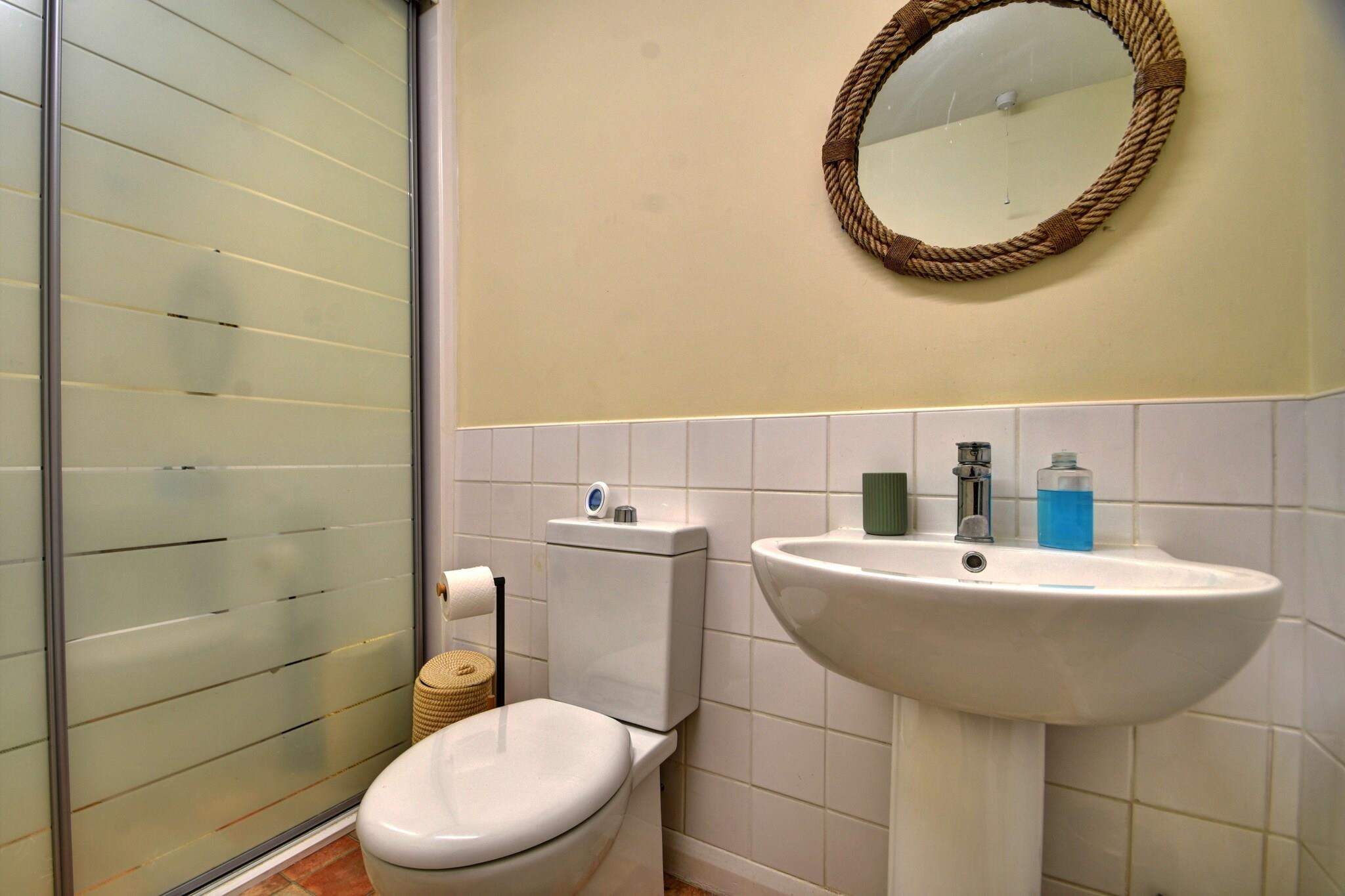Parterre: (Küche(Wasserkocher, Toaster, Backofen, Mikrowelle, Kühlschrank, Tiefkühlschrank, ), Wohn/Esszimmer(TV, Esstisch, Sitzecke), Schlafzimmer(Doppelbett), Schlafzimmer(Einzelbett, Einzelunterschiebebett), Badezimmer(Dusche), Toilette(Toilette), Internet) Waschmaschine, Heizung(elektrisch), Parkplatz, Bügeleisen, Föhn
