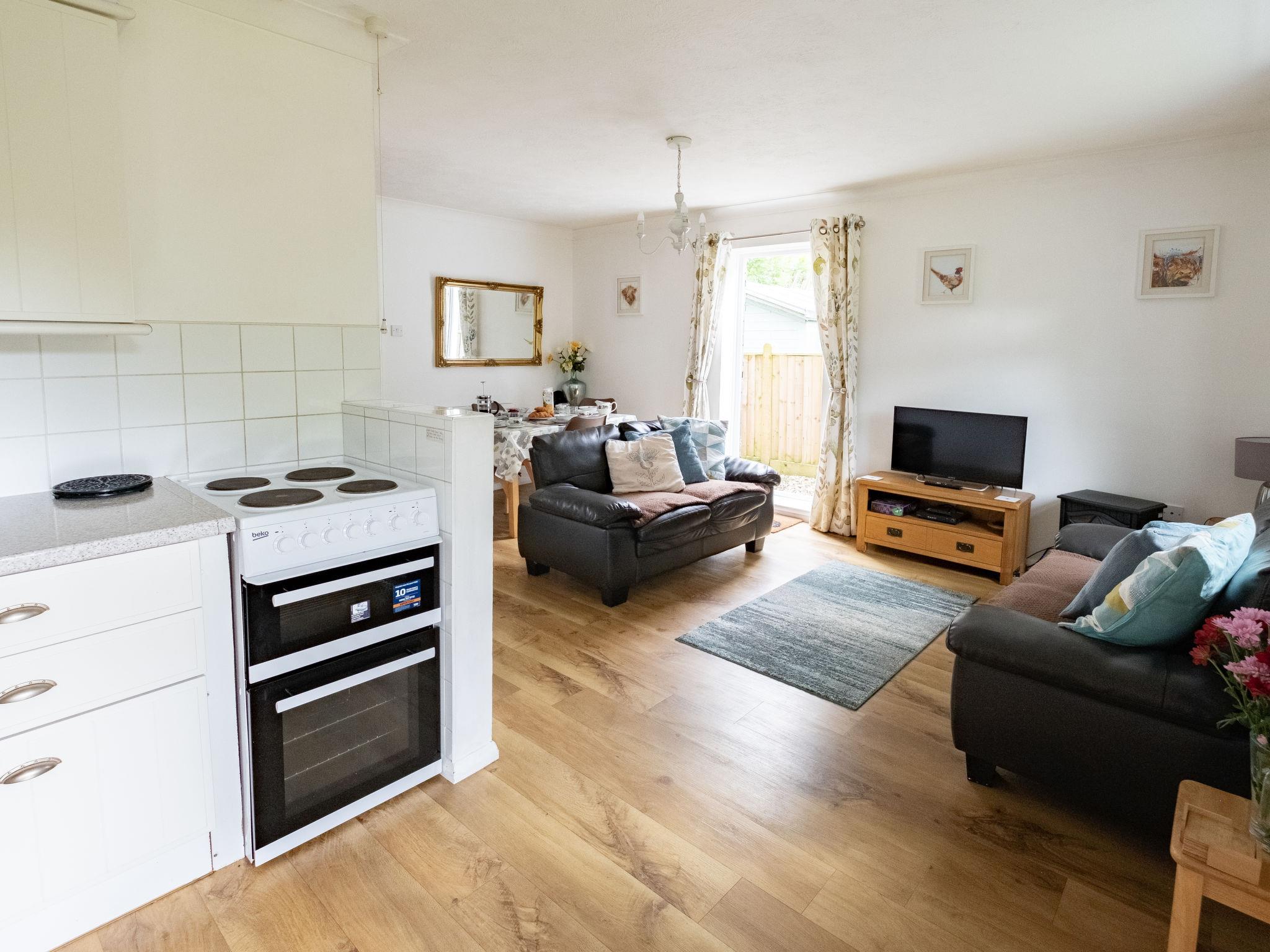 "Oak Cottage", 3-Zimmer-Bungalow 48 m2. Komfortabel und gemütlich eingerichtet: Wohn-/Esszimmer mit Esstisch und TV (Flachbildschirm), DVD. Ausgang zum Garten. 1 Zimmer mit 1 Doppelbett. 1 Zimmer mit 2 Betten. Offene Küche (4 Kochplatten, Backofen, Geschirrspüler, Mikrowelle). Dusche/WC. Ölheizung. Garten. Terrassenmöbel, Gartengrill. Zur Verfügung: Kinderhochstuhl, Babybett bis 3 Jahre. Internet (WLAN, gratis). Maximal 1 Haustier/Hund erlaubt.