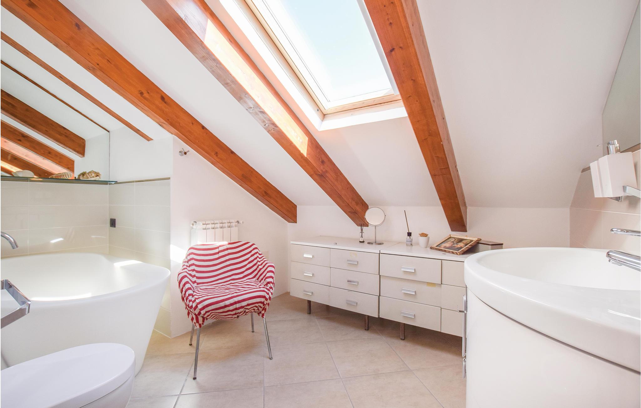 - WC mit warmem und kaltem Wasser, Badewanne