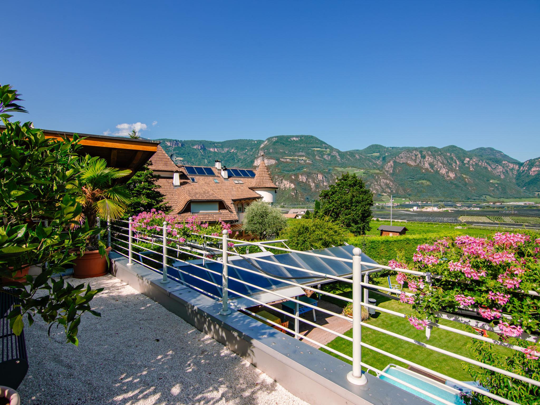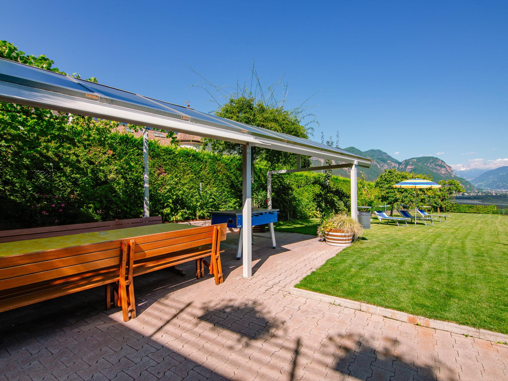 Kleine Residenz "Rosengartenhof", 283 m.ü.M., umgeben von Bäumen und Weinbergen. 5 Wohnungen in der Residenz. 600 m vom Zentrum von Andrian/Andriano, 10 km vom Zentrum von Bozen/Bolzano, erhöhte Lage am Hang, in einem Wohnquartier, Richtung Südosten. Zur Mitbenutzung: Grundstück (eingezäunt), gepflegter Garten mit Rasen, Obstgarten, Liegewiese, Aufstellpool (2 x 4 m, 100 cm tief, saisonale Verfügbarkeit: 01.Jun. - 31.Aug.). Aussendusche, Laube, Gartenmöbel, Grill, Kinderspielplatz (Rutschbahn, Schaukel). In der Anlage: Tischfussball, Waschmaschine (zur Mitbenutzung, extra). Getränkeservice und Frühstück möglich (extra). Parkplatz (für 9 Autos) beim Haus auf dem Grundstück, Gemeinschaftsgarage. Einkaufsgeschäft 600 m, Restaurant, Bushaltestelle "202 Andrian-Terlan-Nals" 600 m, Bahnstation "Terlan (Linea Bolzano-Merano)" 2.5 km, Freibad 1.2 km, Thermalbad "Meran/Merano" 17 km. Golfplatz (9 Loch) 4 km, Radweg 1 km. Nahe gelegene Sehenswürdigkeiten: Meran/Merano 17 km, Trient/Trento 65 km, Mountainbike 500 m. Bekannte Skigebiete sind gut erreichbar: Meran 2000 23 km, Seis/Siusi (Grödner Tal / Val Gardena) 37 km, Obereggen/S.Floriano (Skicenter Latemar) 36 km. Bekannte Seen in der Umgebung sind gut erreichbar: Kaltern/Caldaro 21 km, Montiggl/Monticolo 17 km. Wandergebiete: Andrian/Andriano 250 m. Ab Hof Verkauf von bäuerlichen Produkten. Bitte beachten: Der Besitzer wohnt im selben Haus.